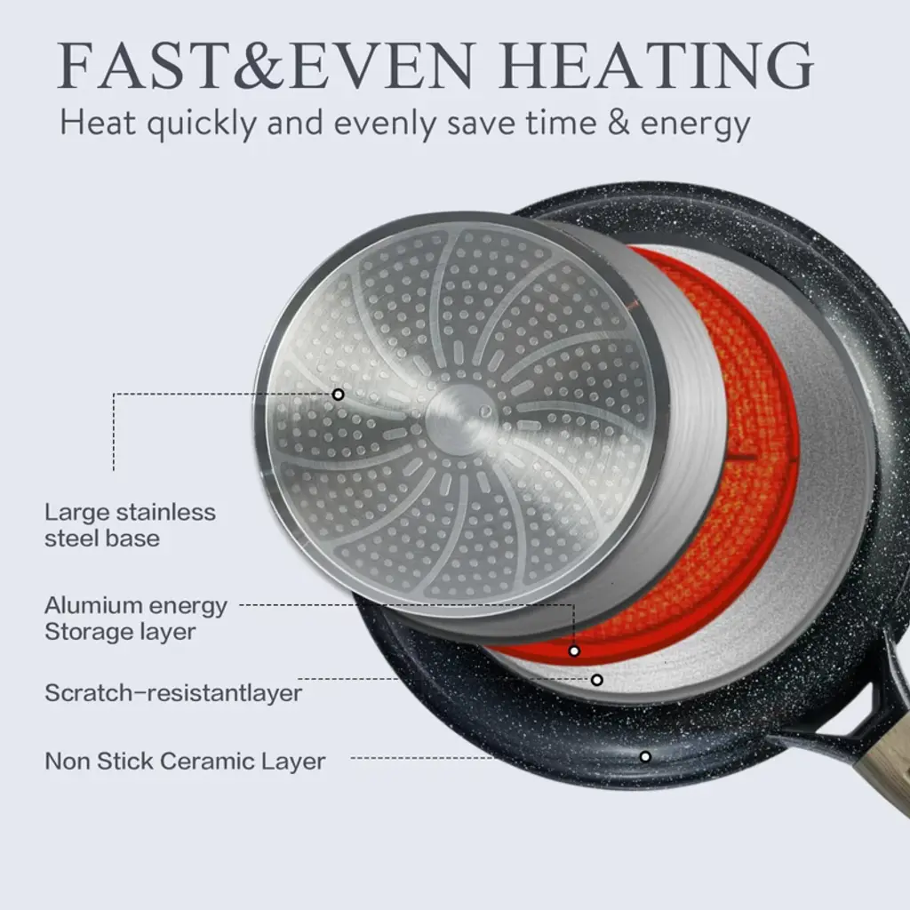 Discover our 22 - piece ceramic cookware set, a perfect addition to your kitchen! This set includes a variety of frying pans, saucepans, casseroles, a Crape Pan, glass lids, silicone utensils, a spoon rest, and pan protectors. It features a premium non - stick ceramic coating that is 100% non - toxic, free from PFOS, PFOA, and Teflon, ensuring a healthy cooking experience. The heavy - gauge aluminum core offers even heat distribution, preventing hot spots and guaranteeing consistent cooking results. It's compatible with all stovetops, including induction, gas, and electric. Whether you're frying, simmering, or baking, this cookware set is up to the task. With its easy - to - clean non - stick surface, you can spend less time on cleanup and more time enjoying your delicious meals. Upgrade your culinary adventures with this versatile and healthy cookware set!