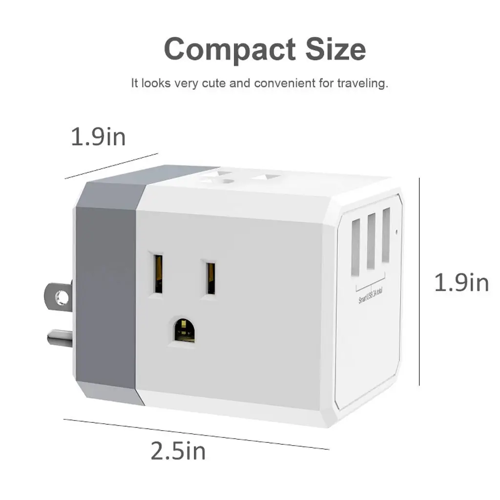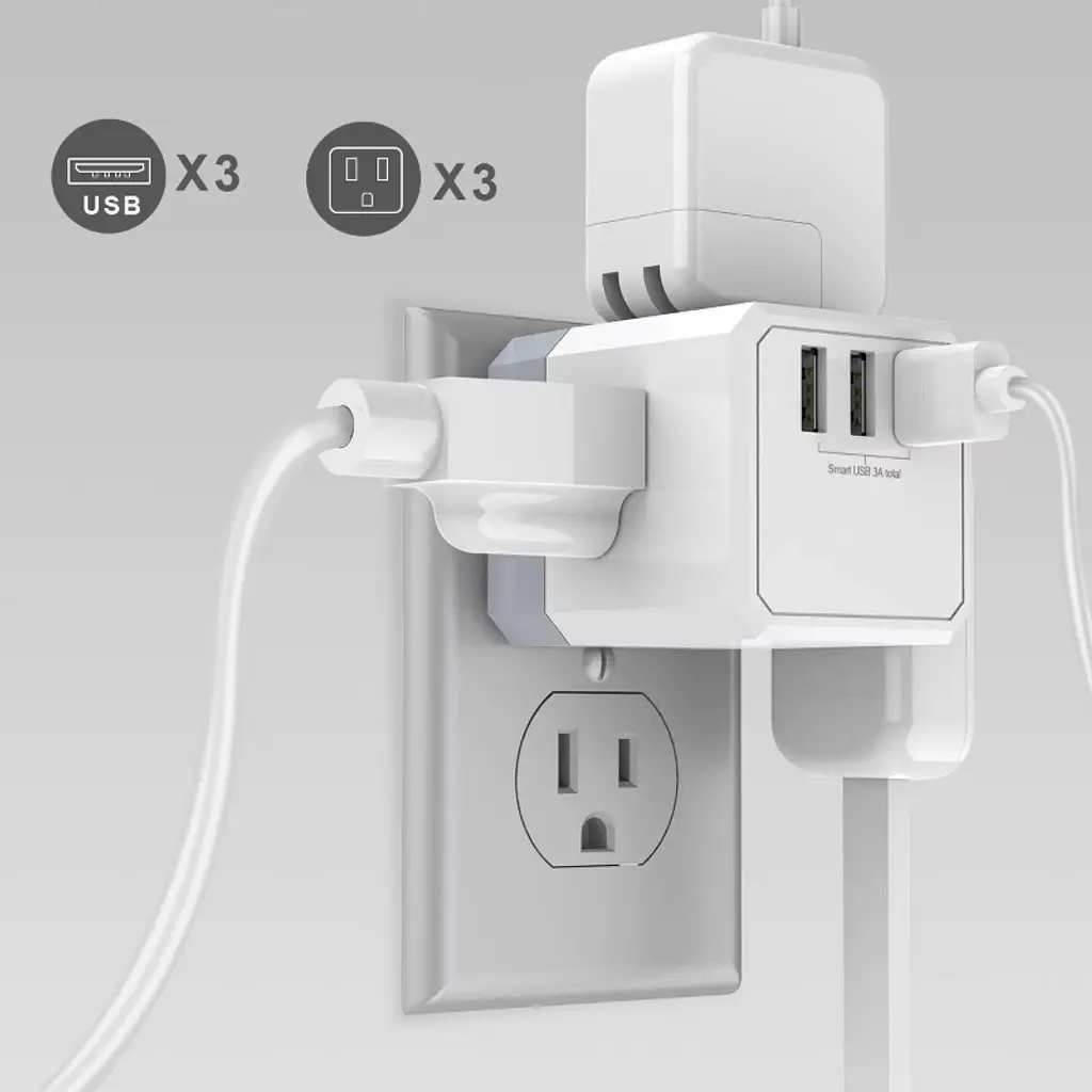 Discover this 3 - Outlet USB Wall Charger and Extender with 3 - Way Splitter. It's ETL listed, a must - have for various settings. This portable travel adapter is incredibly convenient, taking up just one wall socket. With 4 side outlets and 3 USB ports, you can charge up to 6 devices at once. The USB ports have a 5V 3.0A shared rating and automatically detect devices to provide an optimal charging speed of up to 2.4A per port. Its unique cube design allows it to accommodate 1 large adapter and 2 standard plugs simultaneously. Whether you're on a cruise ship, in a hotel, at home, or in the office, this charger will meet your charging needs. And it's non - surge, making it compliant with major cruise lines. Simplify your charging experience with this versatile charger.