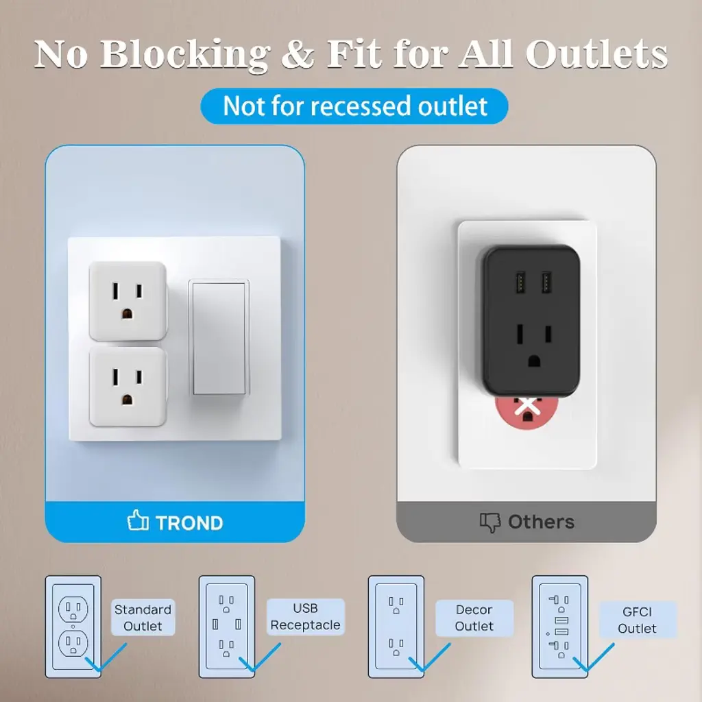 Upgrade your power supply with our 3 - outlet wall adapter. With an electrical rating of 125V/15A and a maximum wattage of 1875W, it can handle high - wattage devices without any issues. Crafted from ABS flame - retardant material, this adapter is both durable and safe. It features 3 outlets, perfect for large electronics and household appliances, allowing you to expand your power options. The 3 - prong grounded plug offers protection against electrical shock and surge damage. Whether you're at home or in the office, it provides multiple outlets in one location. Simply plug it into any standard socket, and you'll enjoy a hassle - free power experience, no more struggling to reach far - away outlets.