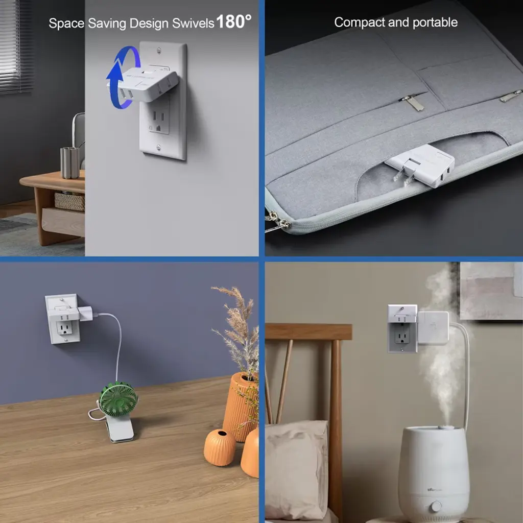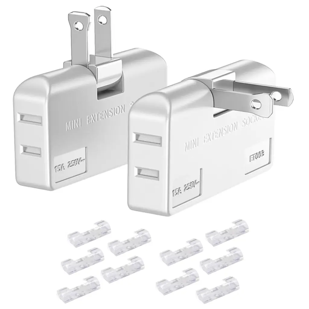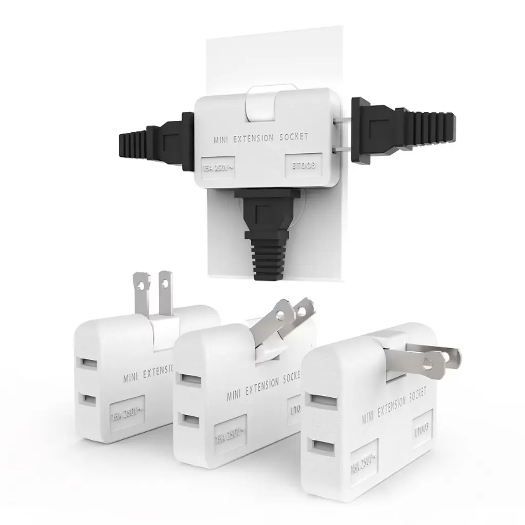 Upgrade your power usage with this 3 - way flat wall outlet extender. It's a multi - functional AC adapter that can convert one indoor ungrounded wall plug into three. The 180 - degree rotating A - type plug is a game - changer, allowing you to bend it to different angles without blocking other sockets. Made of PC flame - retardant material, it ensures safety while in use. With a maximum rated voltage of 125VAC, 15A, and 2500W, it can power a wide range of devices such as lighting fixtures, tablets, phones, chargers, and printers at home or in the office. Its compact 3 - way 2 - prong socket expansion design is space - saving, enabling you to use large adapter - shaped plugs. Whether you're at home or traveling in the US or Taiwan, this outlet extender offers great convenience and is perfect for personal use or as a gift.