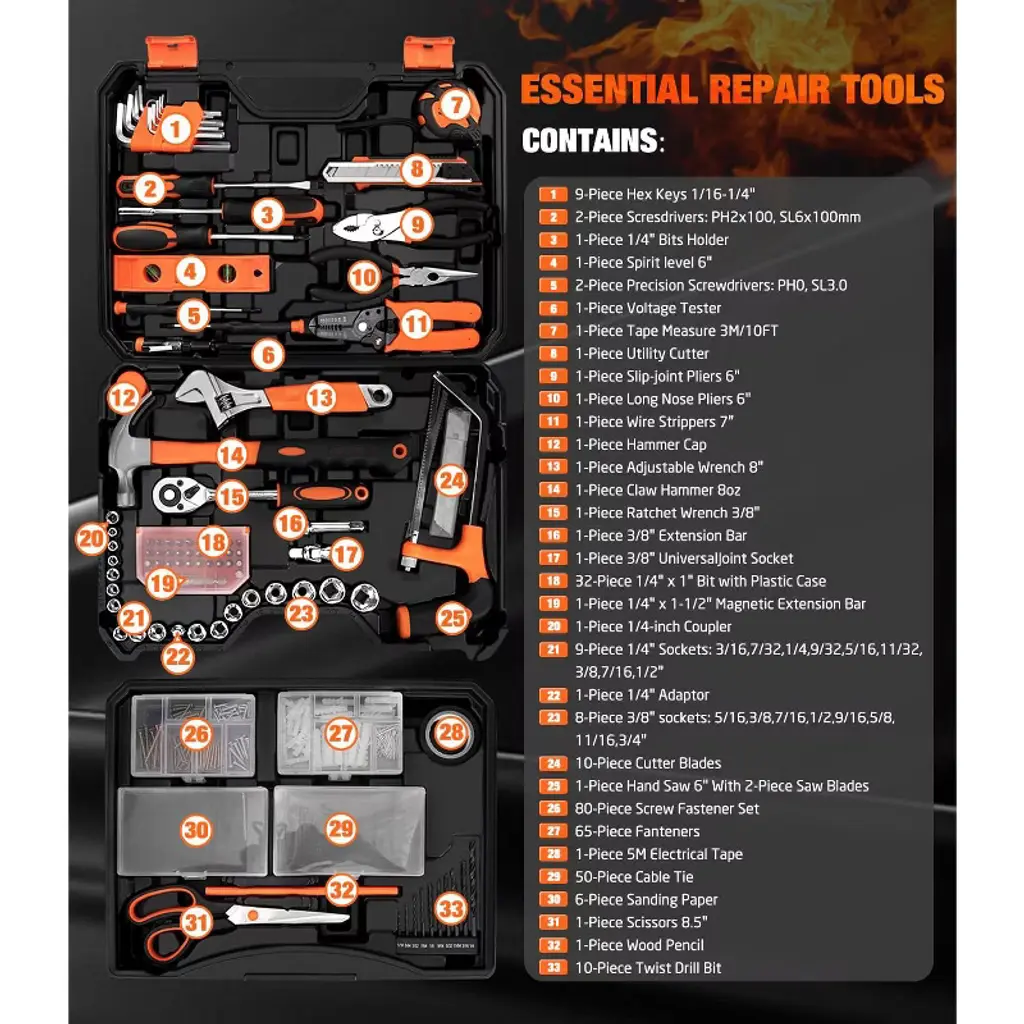 Itopfox 328-piece Tool Set With Storage Case & Drawer, General Household Hand Tools For Home & Diy Repairs, Essential Kit