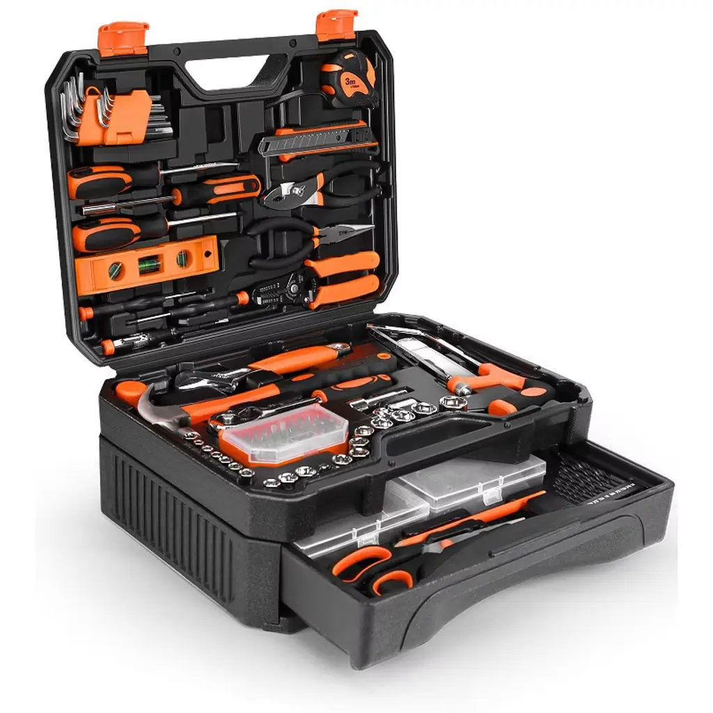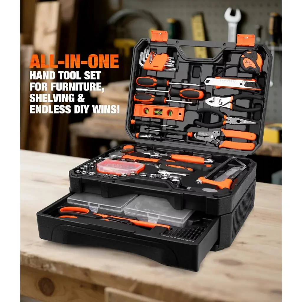 Discover the ultimate 328 - piece tool set, a must - have for any home. This comprehensive collection includes all the essential tools like wrenches, sockets, screwdrivers, and pliers, perfect for DIY repairs and home maintenance. The toolbox comes with a detachable drawer, allowing for easy organization and quick access to tools. Whether you're a seasoned DIY enthusiast or just starting out, this versatile kit can handle a wide range of home repairs. It features 1/4 - inch and 3/8 - inch sockets, precision screwdrivers, a 45 - tooth ratchet, and multiple - sized screwdriver bits. The soft - grip handles on key tools ensure comfort and better control, making every task more efficient. Ideal for various home improvement projects, it's also a great gift for special occasions. With this tool set, you'll have everything you need at your fingertips to keep your home in top shape.