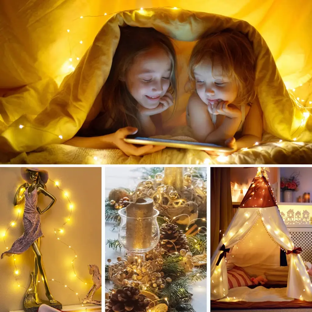 Enhance your home, party, wedding, or Christmas decorations with these 5 - pack fairy lights. Each string is 7 feet long and features 20 warm - white micro LEDs that shine super bright and create a 360° sparkling glow, much better than incandescent lights. Built on an ultra - slim silver wire, they offer an elegant look. The switch has three positions including a timer function that allows the lights to be on for 6 hours and off for 18 hours. These lights are waterproof, suitable for both indoor and outdoor use. Ideal for a wide range of celebrations, they'll transform any space into a magical wonderland.