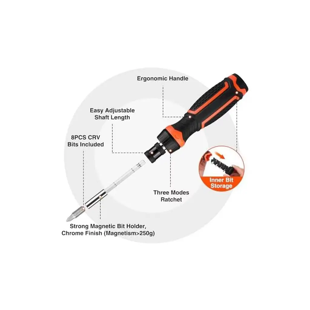 Itopfox 9-in-1 Ratcheting Screwdriver Set With Adjustable Length High-strength Bits Phillips, Slotted, Torx, Hex, Nut Driver For Various Applications