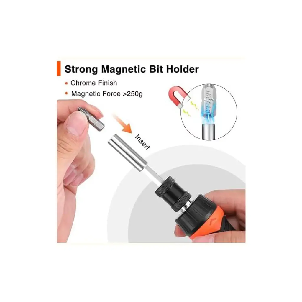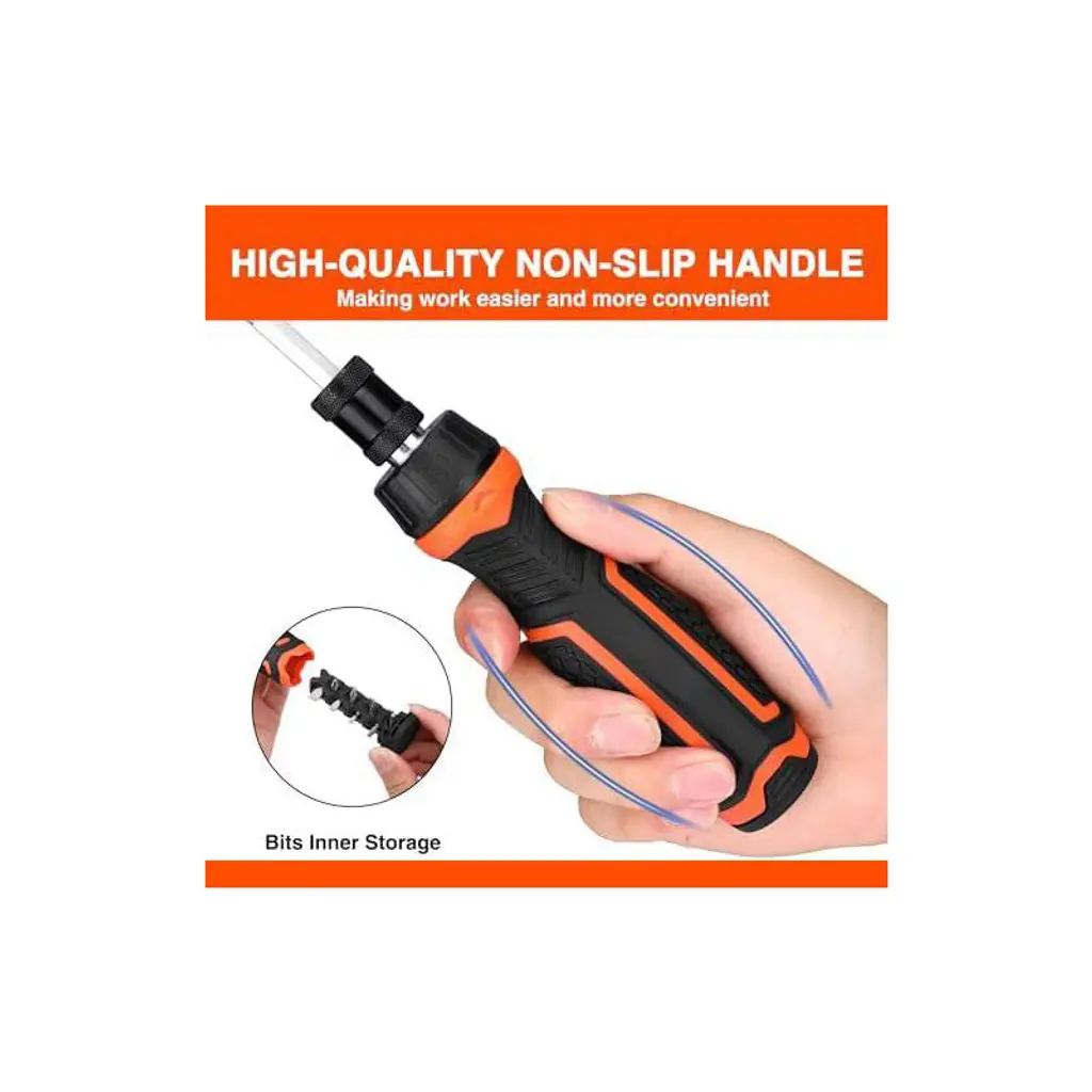 Discover this amazing 9 - in - 1 multi screwdriver set. It features a ratcheting mechanism that enables quick switching between clockwise, counterclockwise, and lock - in positions, making fastening and loosening a breeze. The set comes with 8 non - magnetic bits, while the bit holder is magnetic for easy bit changes. With bits like SL3/16, SL1/4, PH1, PH2, T15, T20, H5, H6, it can handle a wide range of applications. The ergonomic handle with a black TPR rubber cover is comfortable and reduces hand fatigue. The three - mode adjustable shaft can adapt to different depths, allowing access to hard - to - reach areas. Crafted from CR - V steel, it's heat - treated and polished to resist rust, ensuring long - lasting performance. Whether for household repairs or DIY projects, this screwdriver set is a practical and reliable choice, and also makes an ideal gift for men or hobbyists.