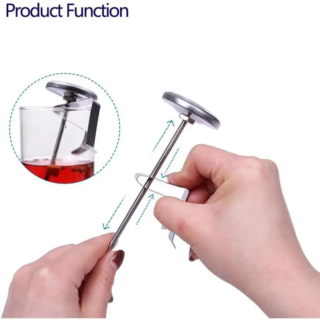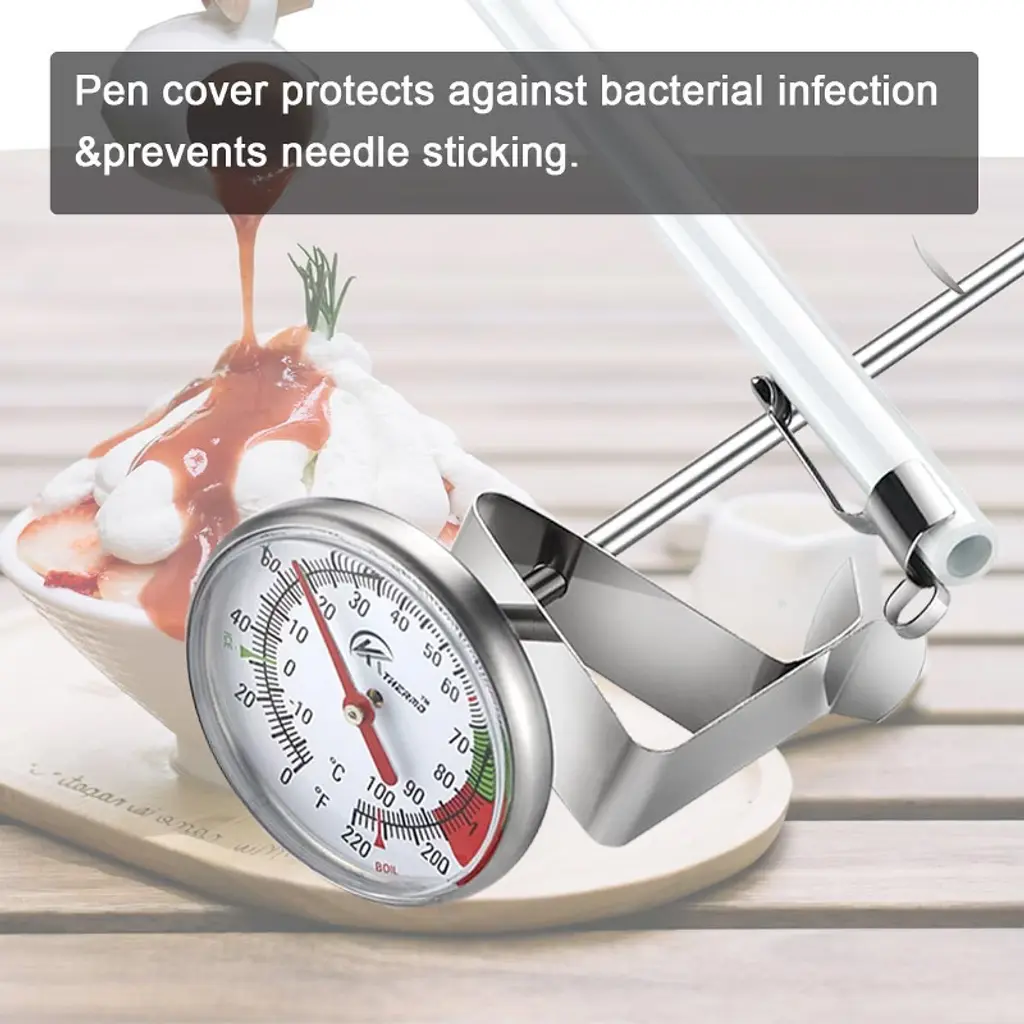 Discover this amazing instant - read 2 - inch dial thermometer, perfect for coffee drinks and chocolate milk foam. With a multi - stage fixed clip design, you can easily adjust the reading position to observe the bubble temperature. It measures safely and simply, directly and accurately gauging the foam temperature. The wide measuring range from 0°F to 220°F means it can handle boiling or frozen items. Made of compact stainless steel, it's not only easy to use but also a breeze to clean. Whether you're a home barista or just love a good cup of coffee or chocolate milk, this thermometer will help you achieve the perfect temperature every time, making your beverage - making process more enjoyable and precise.