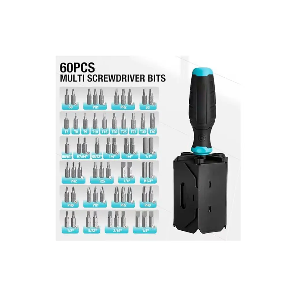 Itopfox Multi-function Screw Driver Set With 60 Replaceable Cr-v Bits Flat, Phillips, Torx, Hex, Square, All In One Screwdrivers With Rolling Barrel