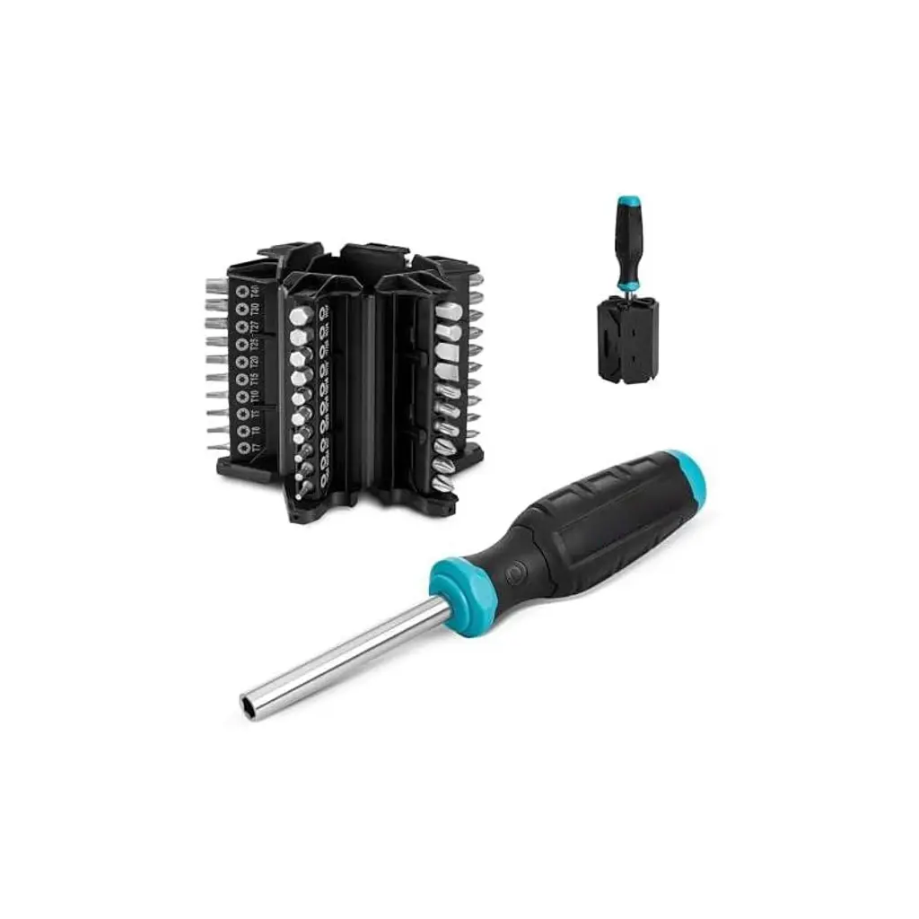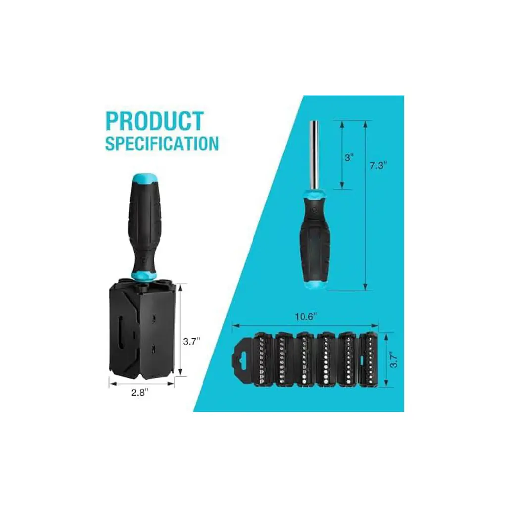 Discover an all - in - one screwdriver set that's a game - changer for your tool collection. Crafted from chrome vanadium steel, the 60 high - quality bits offer outstanding strength and durability. The chrome vanadium heads ensure a precise and stable fit on screws. The set comes with a magnetic screwdriver and a wide array of interchangeable bits, including Flat, Phillips, Torx, Hex, and Square bits in multiple sizes. Using the set is a cinch. The magnetic hanging bar allows for quick bit installation, and the magnetism can hold small screws securely. The innovative rolling barrel design of the bit holders makes organization easy. Whether you're a DIY enthusiast working on home repairs, assembling furniture, or a professional in need of a reliable tool, this screwdriver set is your go - to. It's also an excellent gift for birthdays, Christmas, or any special occasion, bringing convenience to your projects and making your life easier.