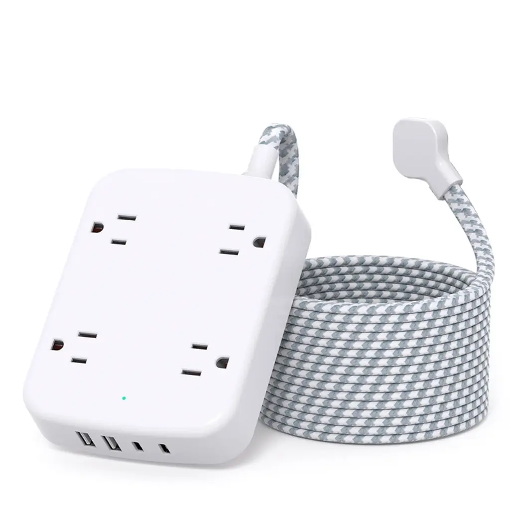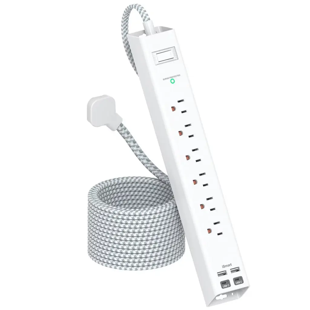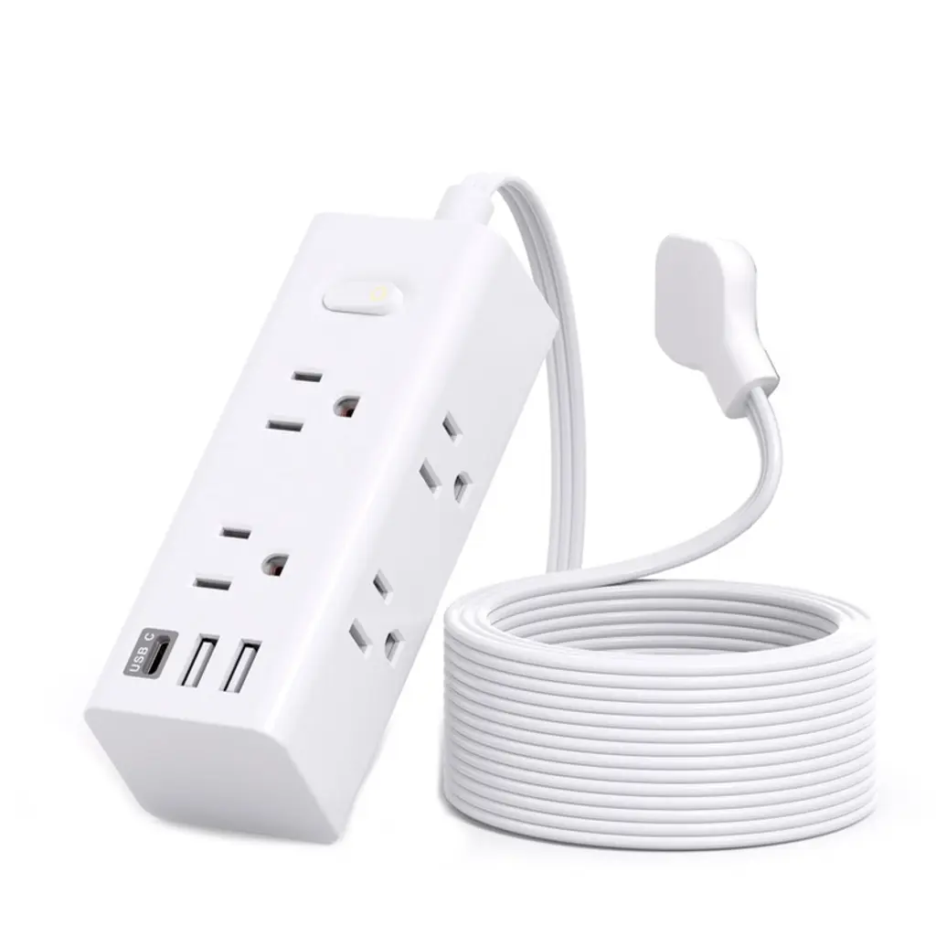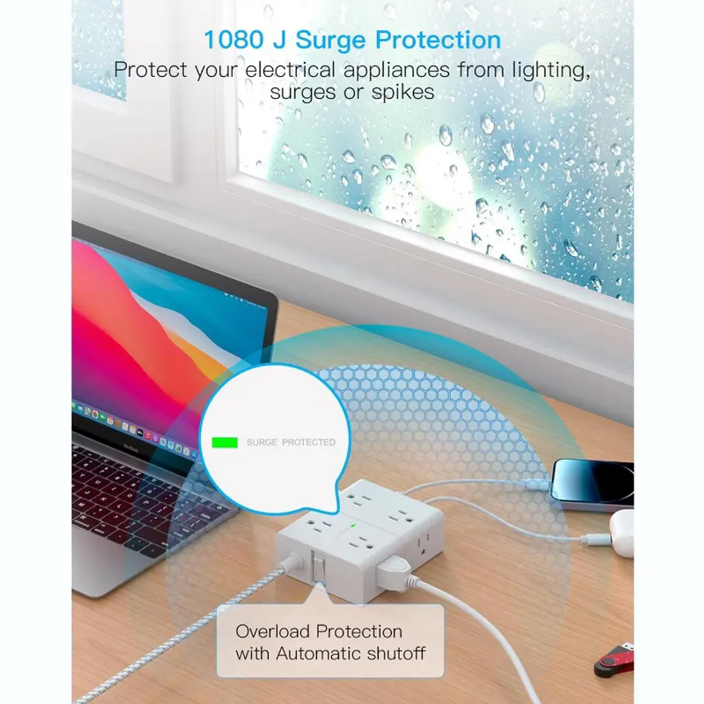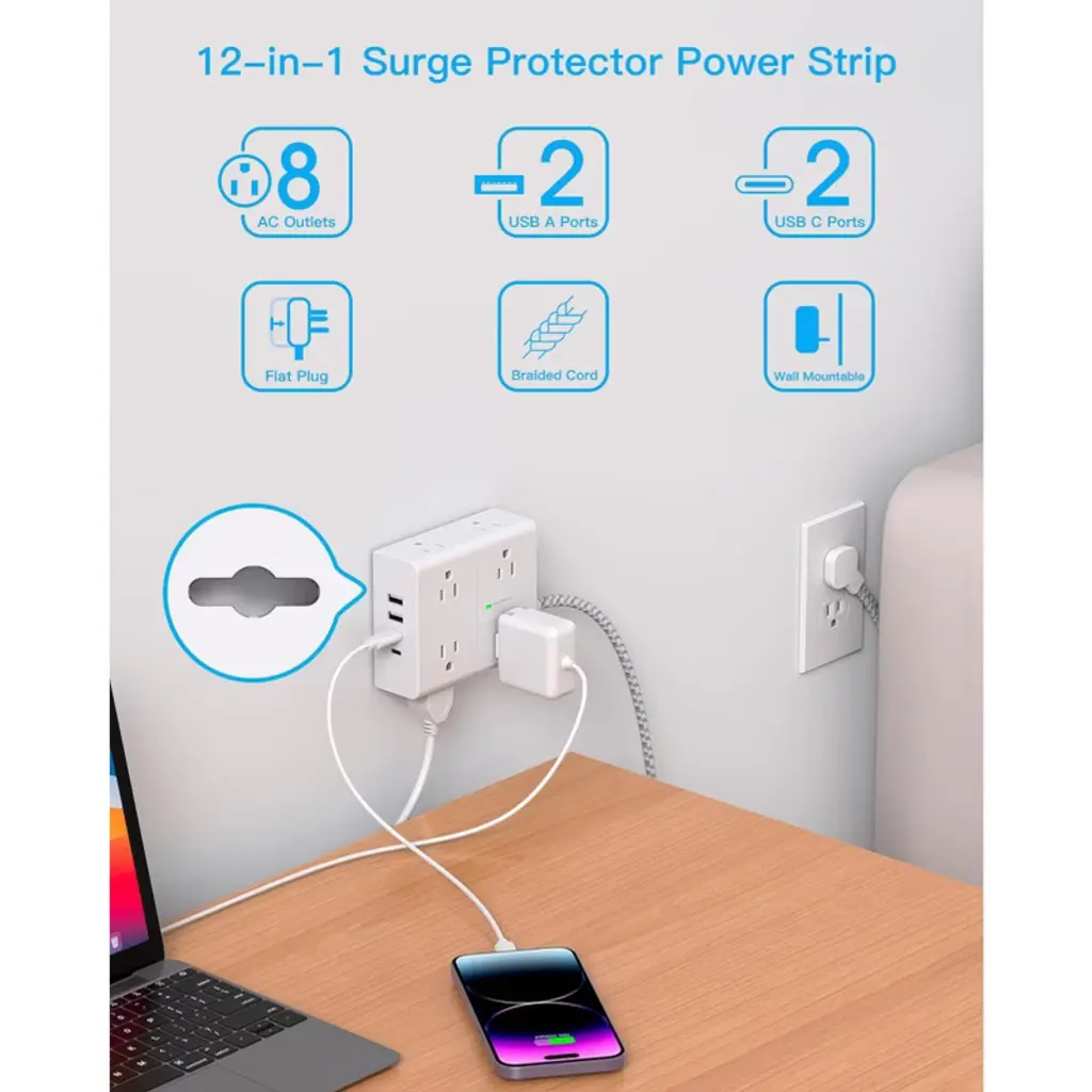 Upgrade your power management with this amazing power strip! It features a 12 - in - 1 design, converting one socket into 8 wide outlets and 4 USB ports, allowing you to power 12 devices at once without converters. The 15 ft flat extension cord is perfect for homes, offices, and dorm rooms. The flat plug can be placed close to the wall, saving space. With dual USB C ports charging up to 5V/3A and USB - A ports up to 5V/2.4A Max, all USB outlets output 5V/3.1A. Smart charging technology detects your devices for faster charging. It offers 1080J surge protection and has an on/off switch that shuts off when power exceeds the rated value. The power strip comes with multiple safety features like overload, short - circuit, over - current, over - voltage, and overheating protection. Its fire - resistant PC shell ensures durability. This power strip is a must - have for convenient and safe power usage.