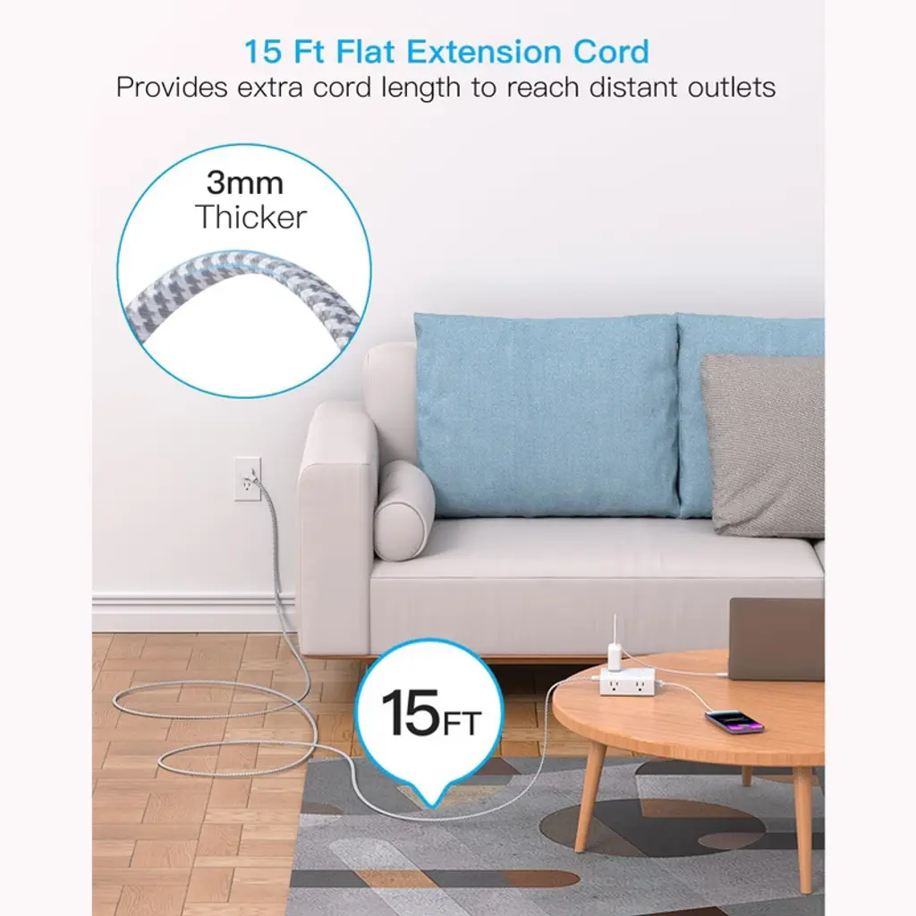 Itopfox Surge Protector Power Strip With 15 Ft Cord, 8 Outlets & 4 Usb Ports (2 Usb C), Flat Plug For Home, Office, Dorm Room Essentials