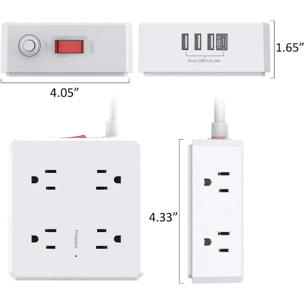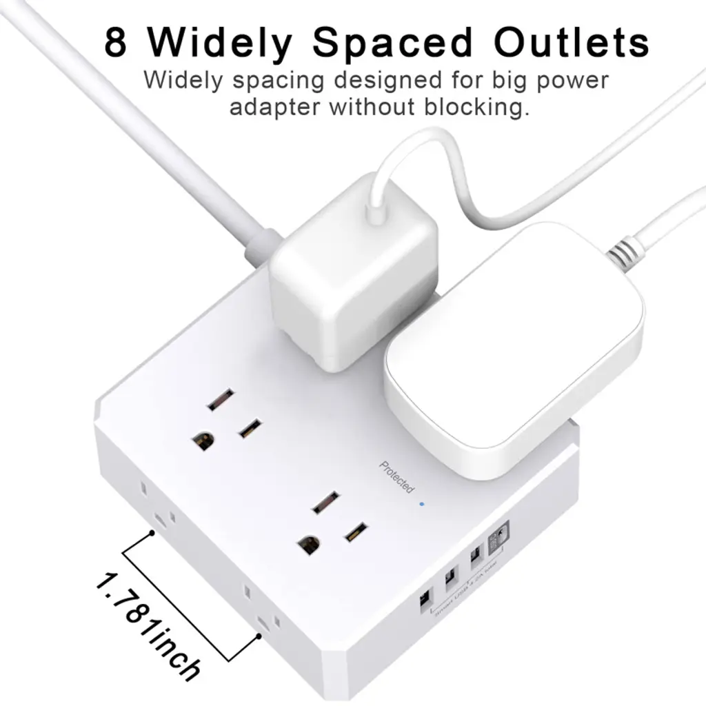 Itopfox Surge Protector Power Strip With 6 Ft Flat Plug Extension Cord, 8 Outlets & 4 Usb Ports (1 Usb C), 3 Side Outlet Extender For Home Office