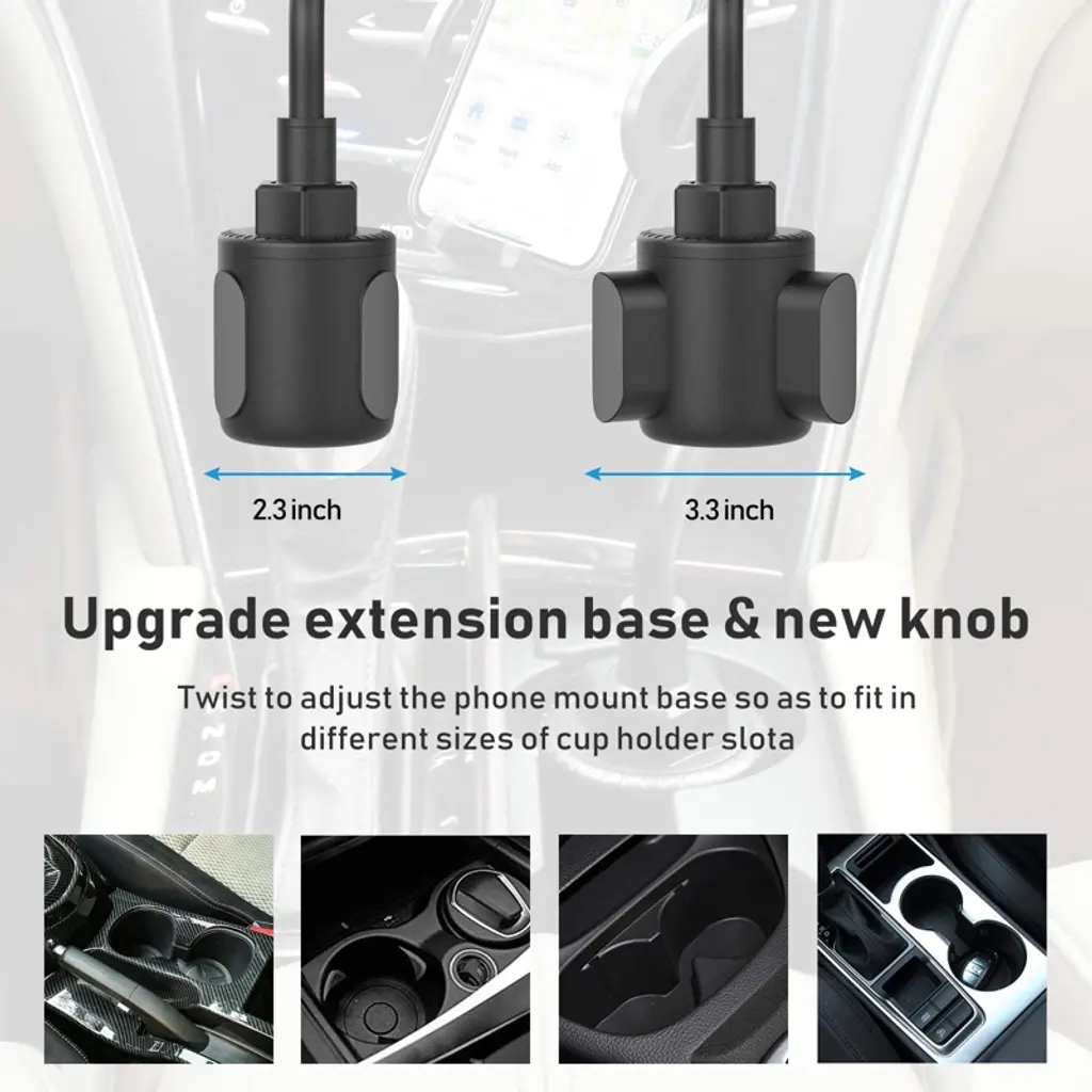 Upgrade your driving experience with our universal adjustable gooseneck cup holder cradle car mount. This car cup phone holder has an adjustable base ranging from 2.3 to 3.3 inches, fitting most standard car cup holders without any extra tools. Its one - button release curved arm and extendable feet offer a safe and best viewing angle. With a quick - release button and a locking lever, installing, removing, and using your phone are a breeze. The soft silicone pads protect your phone from scratches. The adjustable heavy base and strong neck prevent shaking, while the 360° swivel ball and 270° jointed arm enhance your view. It can extend up to 12.6 inches and is compatible with phones 2 - 4.0 inches wide (max 0.99 - inch thickness). Whether you're in a car, truck, RV, boat, or golf cart, this mount is a great fit. It's a safety - first solution, allowing you to use your phone's GPS and hands - free features without taking your hands off the wheel. Also, it's perfect for high - temperature climates, keeping your dashboard clean and not obstructing your view or air vent. Even rear passengers in larger vehicles can enjoy its convenience. Make this car mount your must - have road - trip essential.