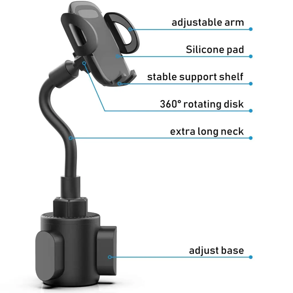 Itopfox Universal Adjustable Gooseneck Car Cup Holder Phone Mount For Iphone, Samsung, Huawei, Lg, Sony - Secure & Stable