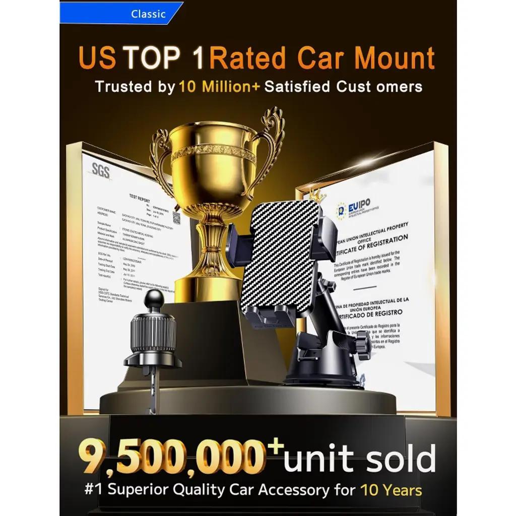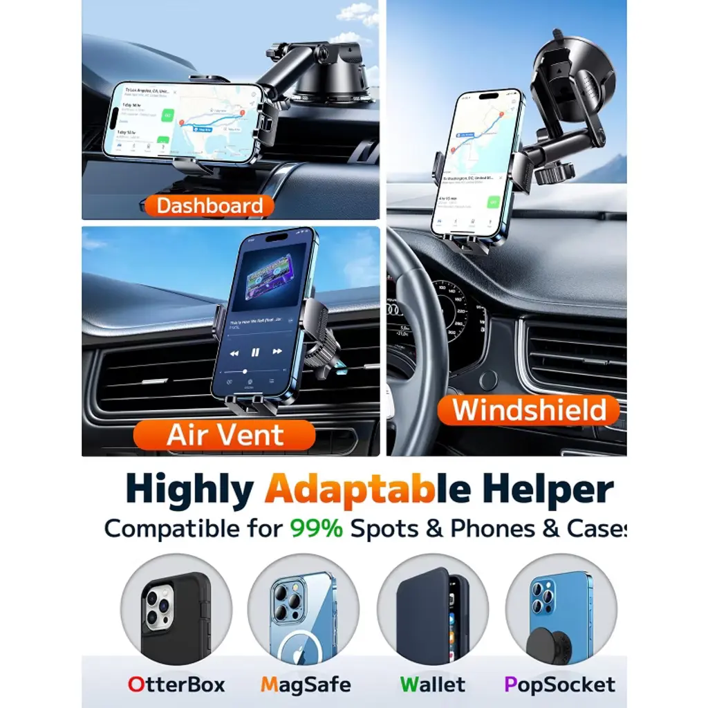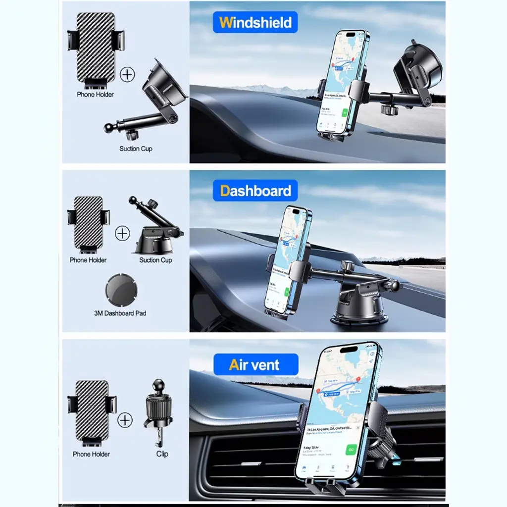 Itopfox Universal Car Phone Mount With Strong Suction, 360° Adjustable Holder For Windshield, Dashboard & Air Vent, Fits Iphone & Smartphones