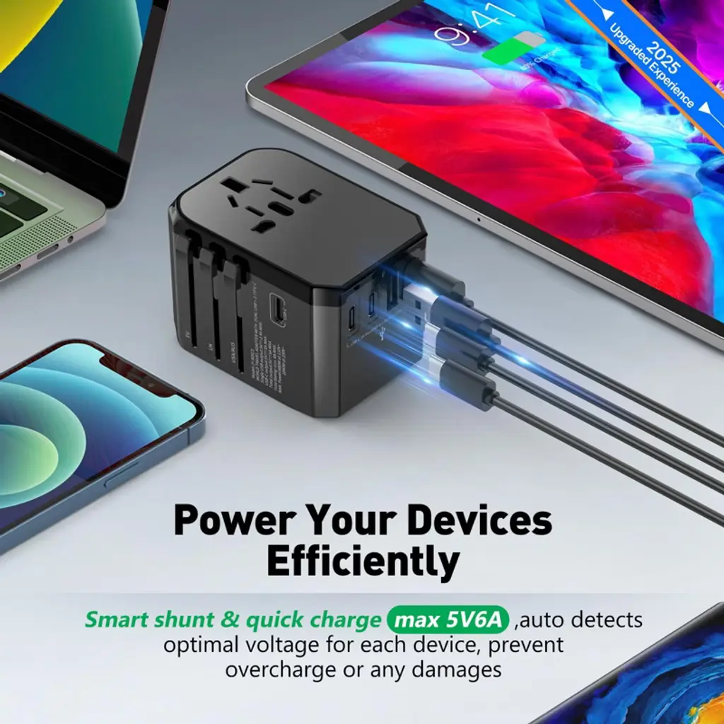Discover the ultimate solution for global charging needs - a universal travel adapter. This all - in - one adapter is compatible with over 200 countries, featuring EU/UK/AUS/US plugs. With a 2000W high - power capacity and a 100V - 250V wide voltage range, it can support most dual - voltage and high - power devices. Charge up to 6 devices at once with 3 USB - C, 2 USB - A ports, and an AC outlet. It's made of premium fireproof material and has an auto - resetting fuse for safety. Although it's not a voltage converter, just ensure your device supports dual voltage. Lightweight and compact, it's an ideal companion for business trips, student travels, or globetrotting adventures, bringing you convenience wherever you go.
