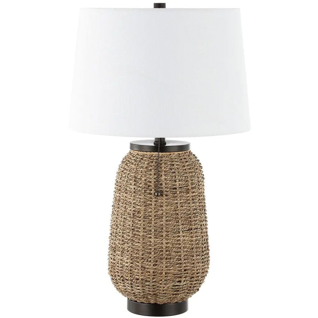 It's A Wrap Natural Wicker + Oatmeal Linen Shade Table Lamp