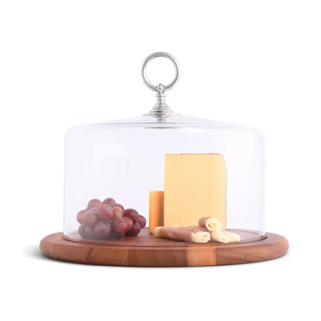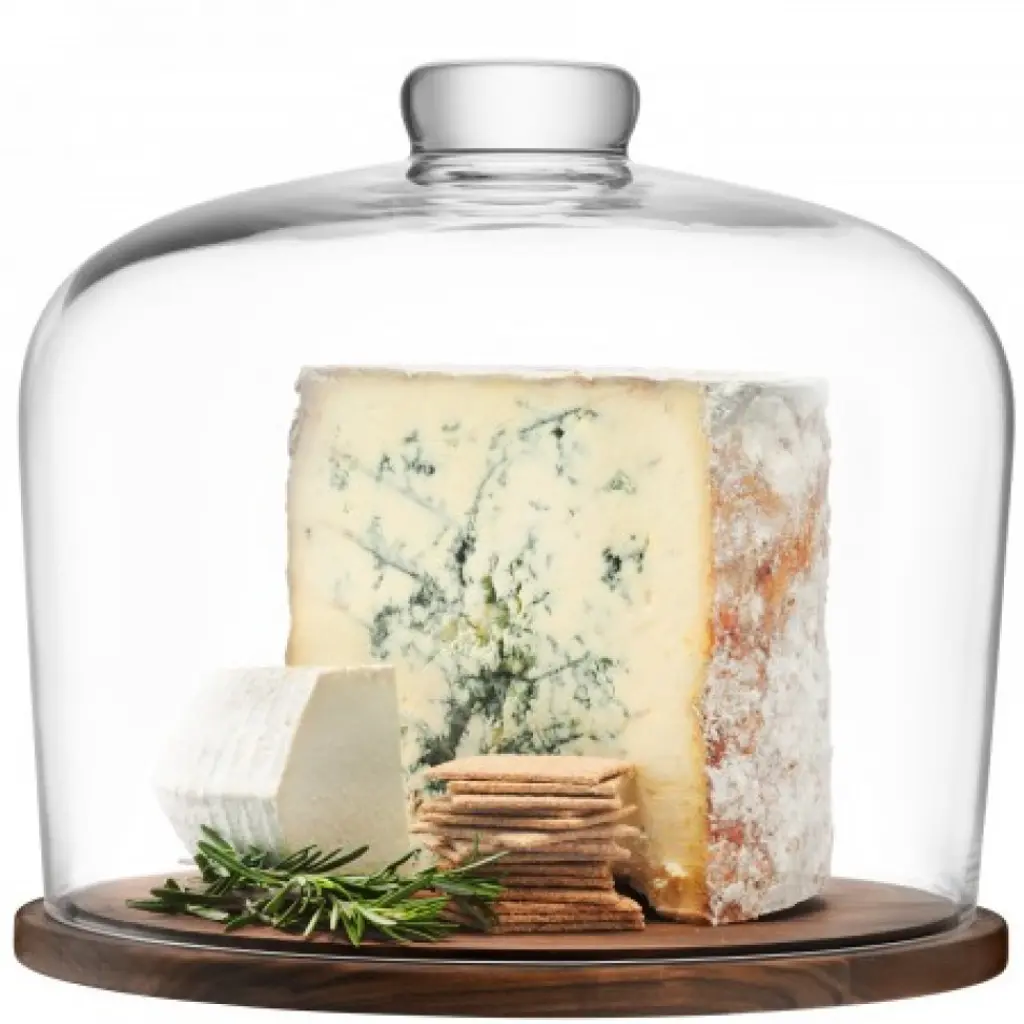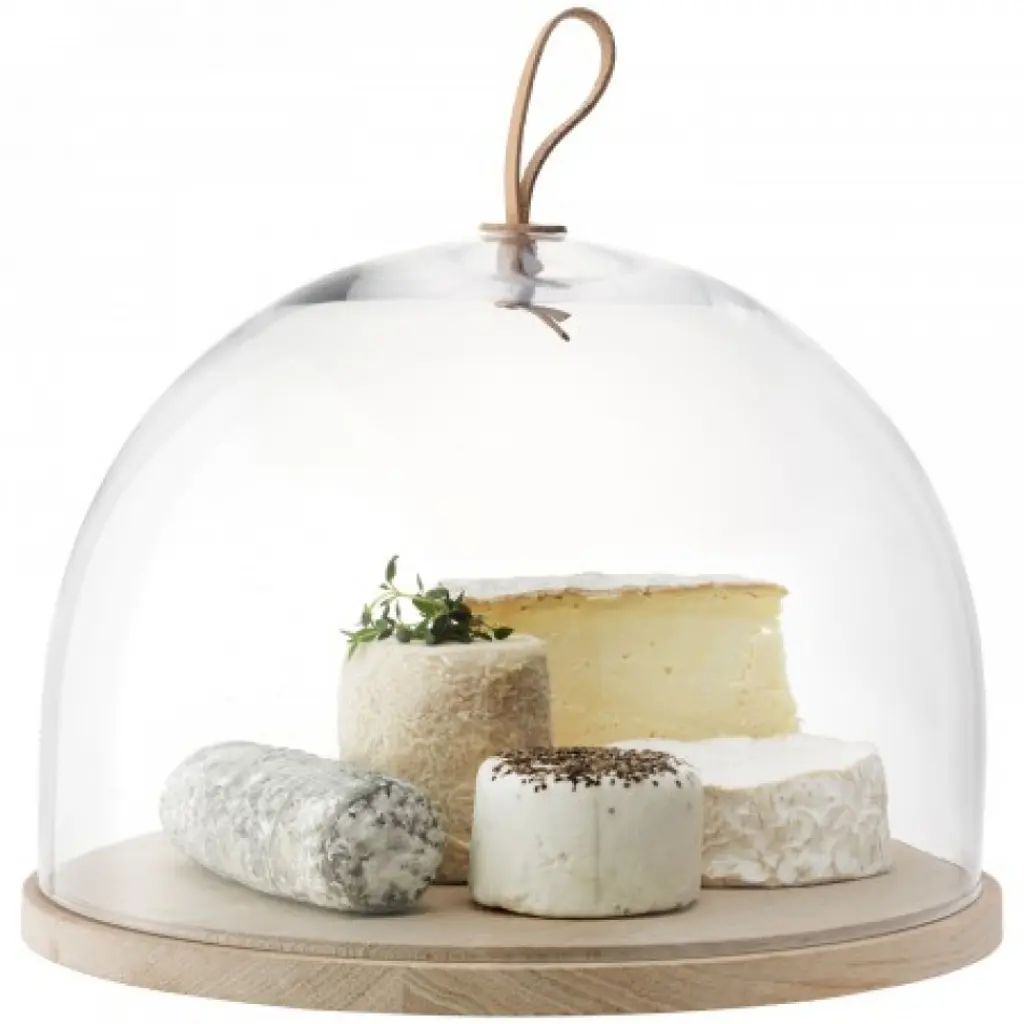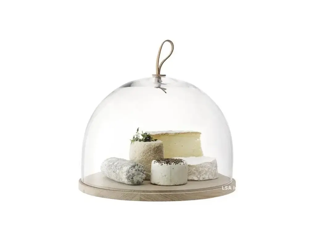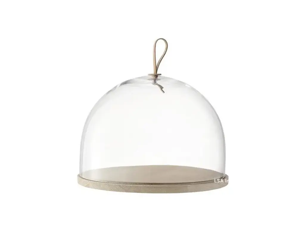 Ivalo Dome & Ash base is a mouth-blown glass dome on a stand made from sustainablys sourced ash. The dome's natural leather toggle is knotted by hand. Designed for serving a single small cake, biscuits or cheese.Mouth-blown glassFSC-certified ashHand-knotted natural leatherIvalo is a collection of mixed material designs for modern tabletop use. Mouth-blown glass, hand-knotted leather, sustainably-sourced ash and cork balance textures to complement Ivalo’s minimalist style.