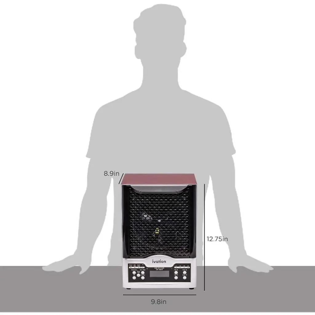 The Ivation digital ozone air purifier with HEPA filter is designed to eliminate mold, pollens, dust, and other odor-causing particles. By producing and releasing ozone, this purifier neutralizes pollutants creating clean-smelling air. And with the built-in ionizer, never worry about harmful particles in your home ever again. This device effectively removes all allergens with the HEPA filter. Use the programmable timer and LCD display to adjust the time, fan speed, and level of ozone generation. Or you can change your settings from a distance with the included remote control. Cleaning is a breeze with the removable ceramic filter plate and front fan grill. Make your indoor environment comfortable and safe with clean and clear air.