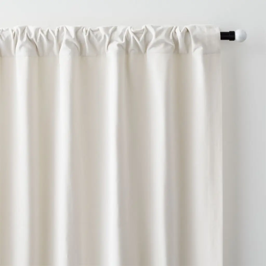 Lush and full-bodied, our cotton velvet curtain dresses up your window in pure luxury. Draping gracefully, the opaque curtain panel in ivory brings elegance to the dining room and a soothing softness to the bedroom. Hang our exclusive ivory velvet curtain panel from the back tabs for an elegant pleated style, use the rod pocket to create a more laid-back gathered look or add a set of our curtain clips (sold separately).Curtain hardware also available.Learn how to hang curtains in our guide.