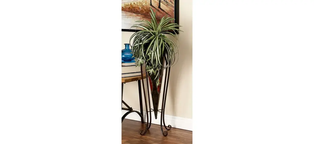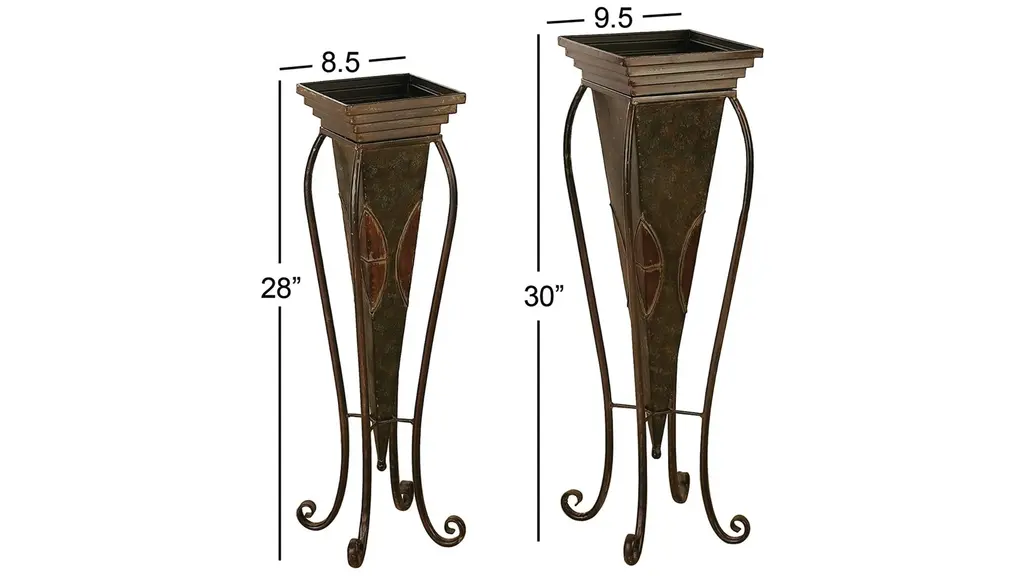 This Ivy Collection Brown Metal Planter Set of 2 will definitely inspire you to add some greenery in your living room, dining room, patio or garden. Use as plant holders for decorative botanical decorations or large indoor plants needing a minimal amount of water as these do not drain liquid. Suitable for indoor and outdoor use. No drainage holes.
