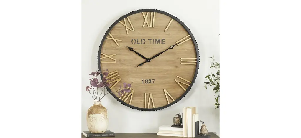 This Ivy Collection Cayuga Clock will make heads turn towards any wall in your home. Runs on one AA battery (not included).The clock mechanism runs silent. Includes hanging hardware for easy hanging.