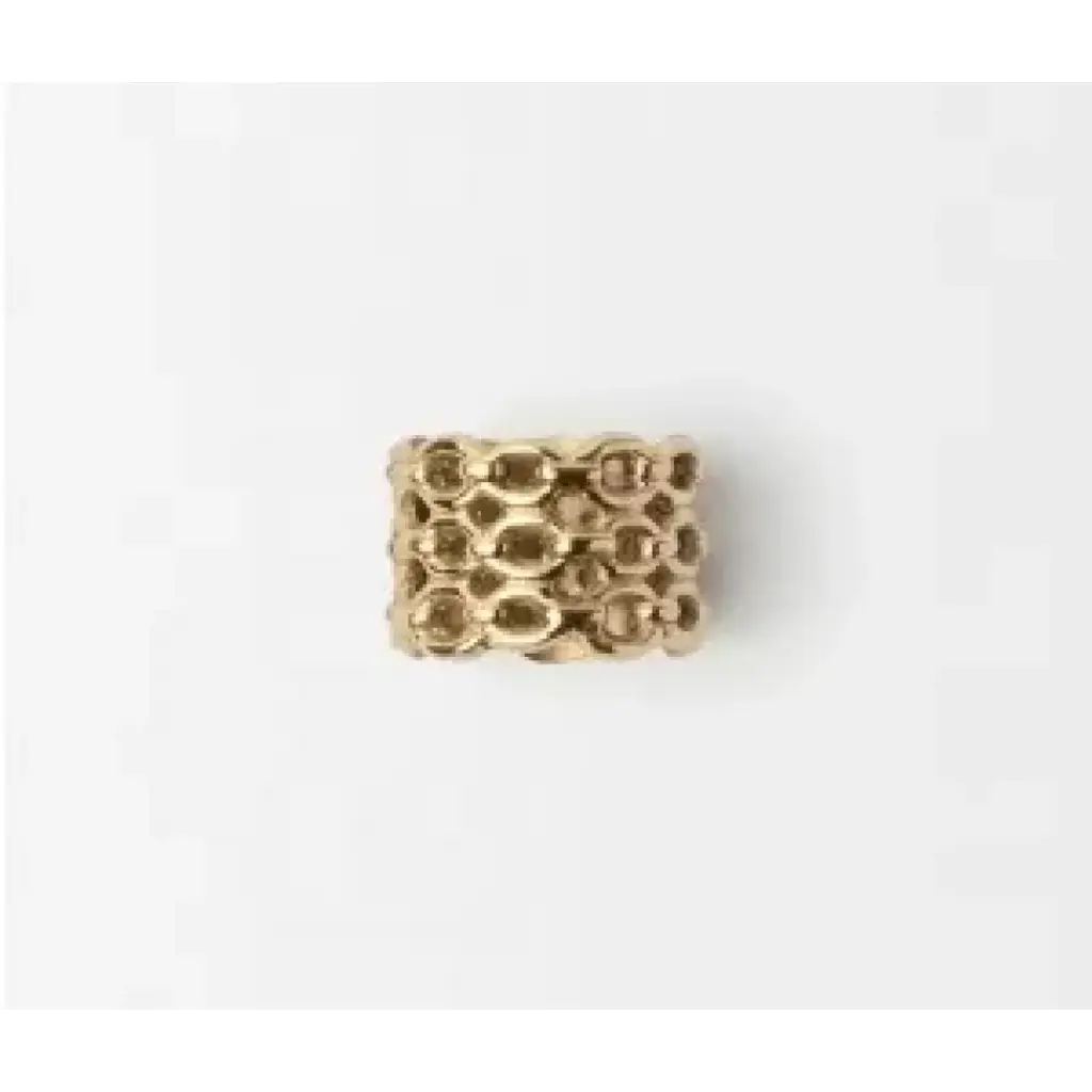 The Ivy Collection Donut Vase is a unique vase with rounded rectangular shape from the front and narrow width from the sides. Let your eyes play tricks on you with the 15 punched-out holes in a grid pattern for a geometric artistic look. But the opening at the top allows for up to 2 single stem faux flowers or vase filler to stay propped up in the center. Designed with rubber stoppers at the base that prevent scratching furniture and table tops, as well as sliding around.