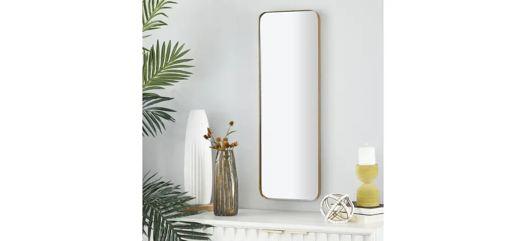 Add the illusion of more space inside your home with the Ivy Collection Gold Metal Wall Mirror. Wall mirrors offer a reflective property that helps naturally brighten up any room in your home. It makes a great centerpiece over your sofa or console table, or in your dining room or bedroom. Glass mirror is attached to welded and projected metal frame. Easy to hang with 4 ring hooks. Suitable for indoor use only.