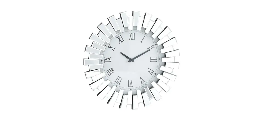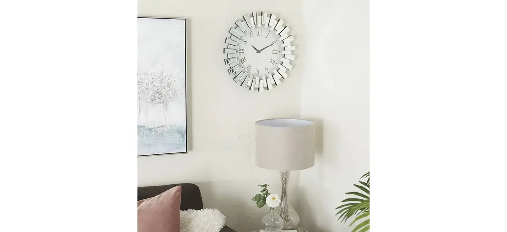 Like a functional art piece for your wall, this round Ivy Collection Kibitz Wall Clock will become a focal point or finishing touch for any room in your glam-themed home with its elegant glass accents. Requires 1 AA battery. The clock mechanism runs silent. Item comes with metal hardware at the back for easy and secure hanging.