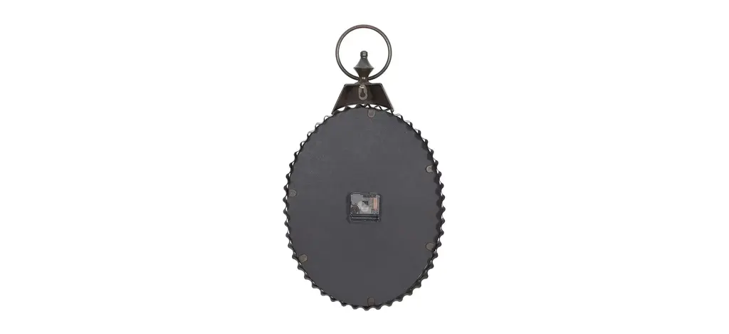 This Ivy Collection Neita Wall Clock will make heads turn towards any wall in your home. Runs on one AA battery (not included). The clock mechanism runs silent. A loop hardware and keyhole hook at the top section allows for easy hanging via a nail or screw.