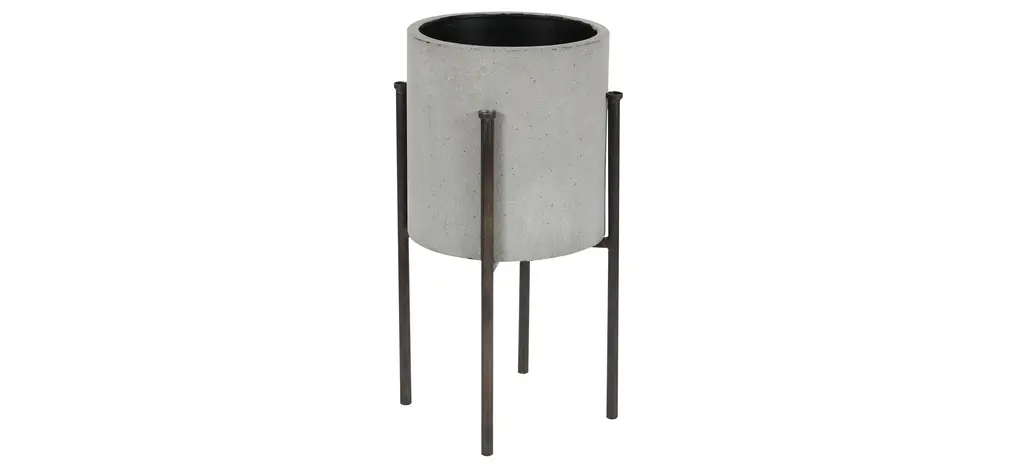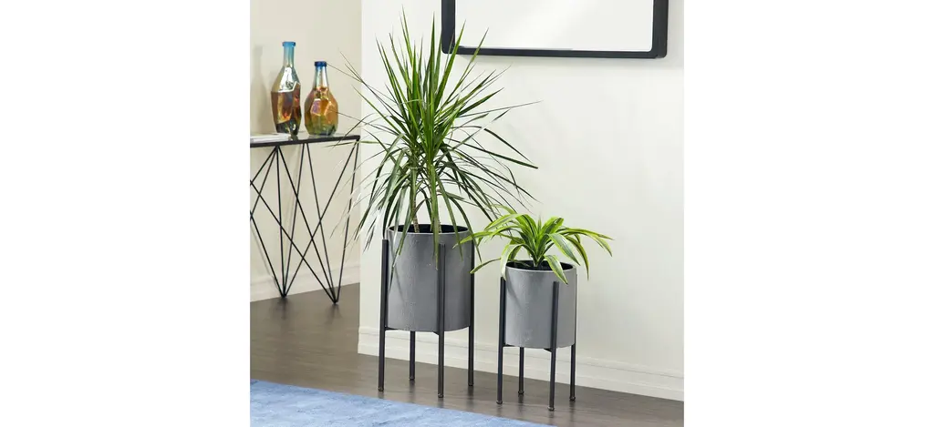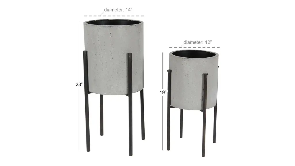 This Ivy Collection Pinellas Planter- Set of 2 brings tranquility to your space by allowing you to fill them with plants-promoting wellness and creating an immediate feeling of relaxation. Beautifully detailed, the set features pots with finished interior and finished exterior, and comes with four-legged metal stands. These planters are made out of iron with solid construction, offering durability and stability. Designed with black rubber stoppers at the base that prevent scratching furniture and table tops, as well as sliding around. Wipe clean with a dry cloth. Suitable for indoor and outdoor use. Pots have no drainage holes.