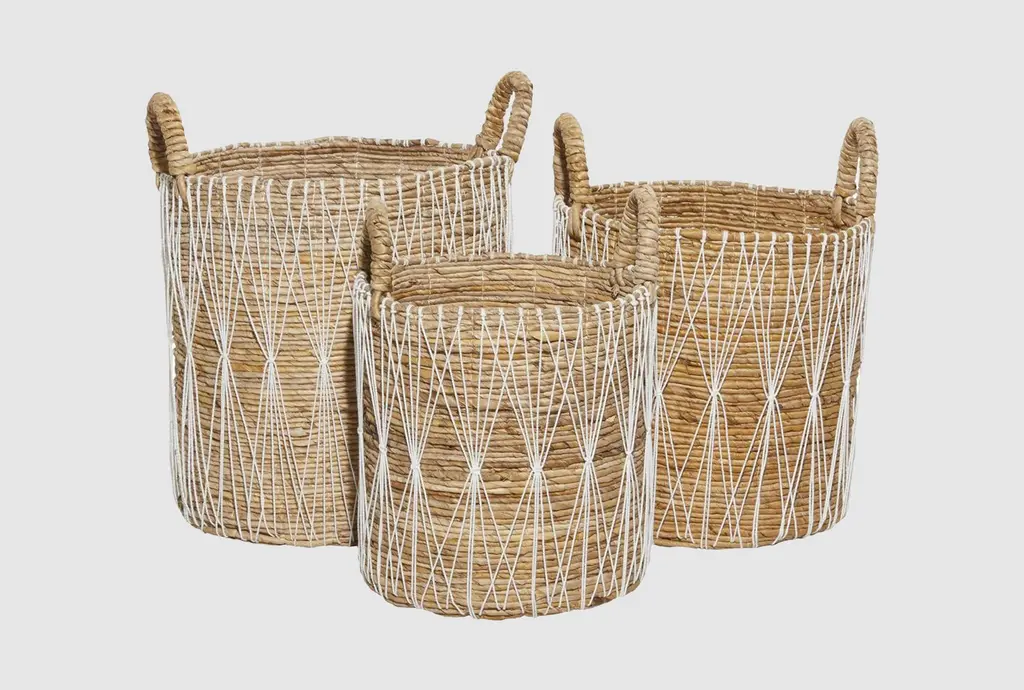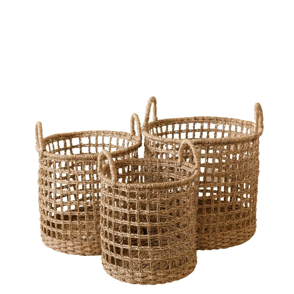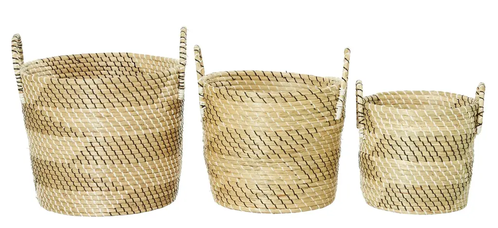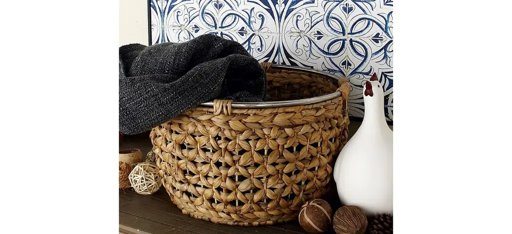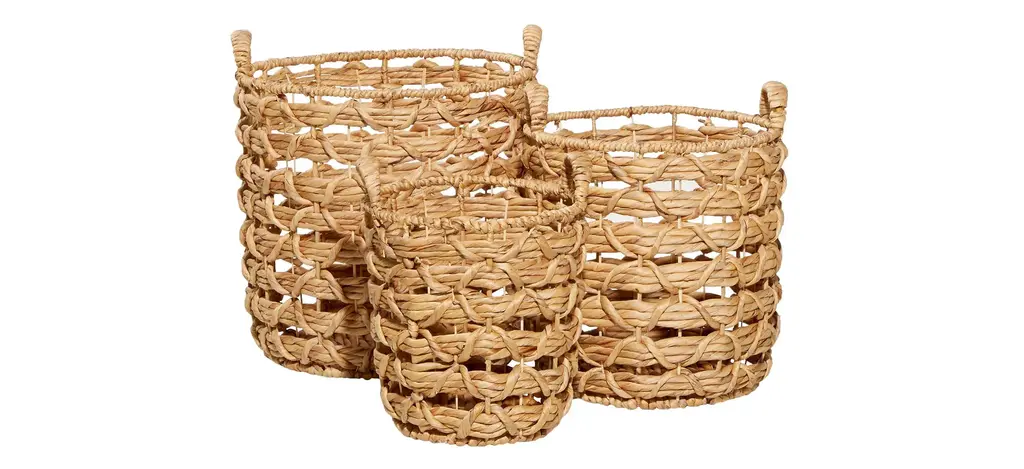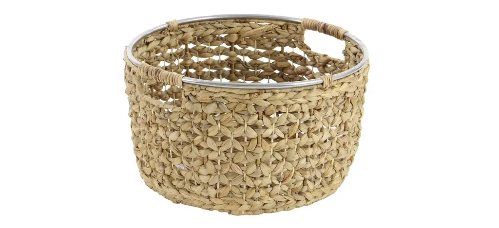For plenty of stylish storage with a modern touch from the metal ring tops, the large, round body of the Ivy Collection Set of 3 Round Storage Baskets create a unique textural design.