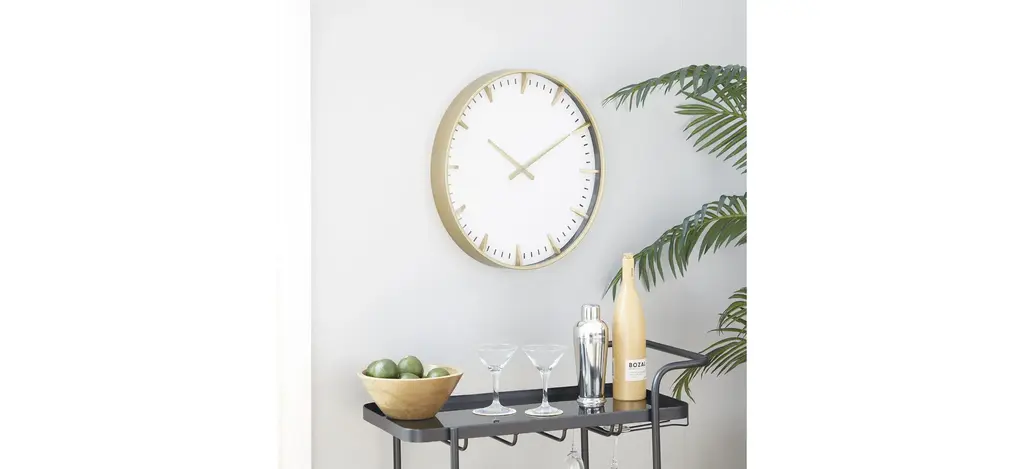This modernist style Ivy Collection Spinnerella Wall Clock is both simple and minimalist in terms of its design and appeal. This metal wall clock features a round design in a contempoary theme except for the luxurious clock border frame and minute markers. The aesthetics of this wall clock is the perfect embodiment of "less is more". 1 AA battery required (not included). The clock mechanism runs silent. Metal secure loop backing for easy hang.