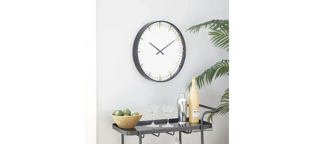 This modernist style Ivy Collection Spinnerella Wall Clock is both simple and minimalist in terms of its design and appeal. This metal wall clock features a round design in a contempoary theme except for the luxurious clock border frame and minute markers. The aesthetics of this wall clock is the perfect embodiment of "less is more". 1 AA battery required (not included). The clock mechanism runs silent. Metal secure loop backing for easy hang.