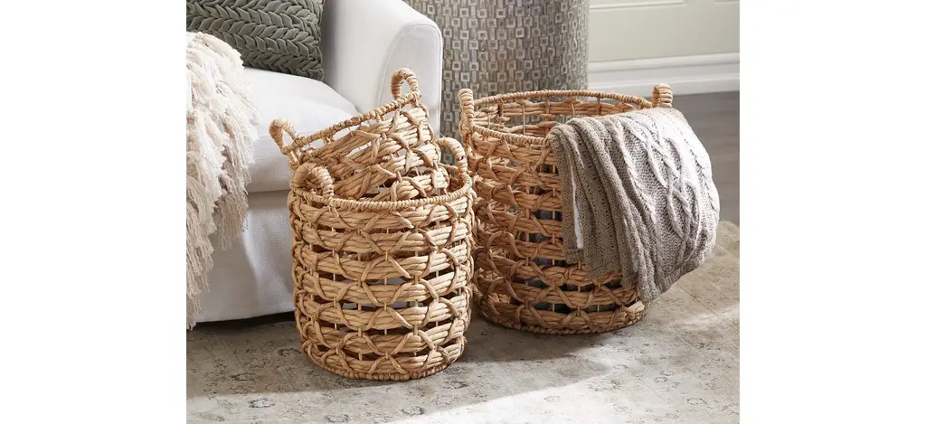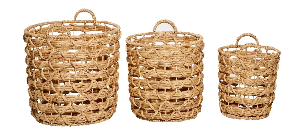 Organizing isn't boring when you the Ivy Collection Storage Basket - Set of 3 to fill. Filled with shoes, books, blankets and more, these storage baskets are a stylish way to store your stuff. Use as charming and natural standalone or set of 3 organizer or Decor. Wipe clean with a dry cloth. Due to the handmade nature of this item, no two will be alike, there will be slight differences in shape, size, and color. Made in Vietnam. This set contains 3 nesting storage baskets. Coastal design. This item ship in one carton.