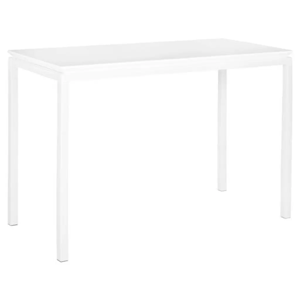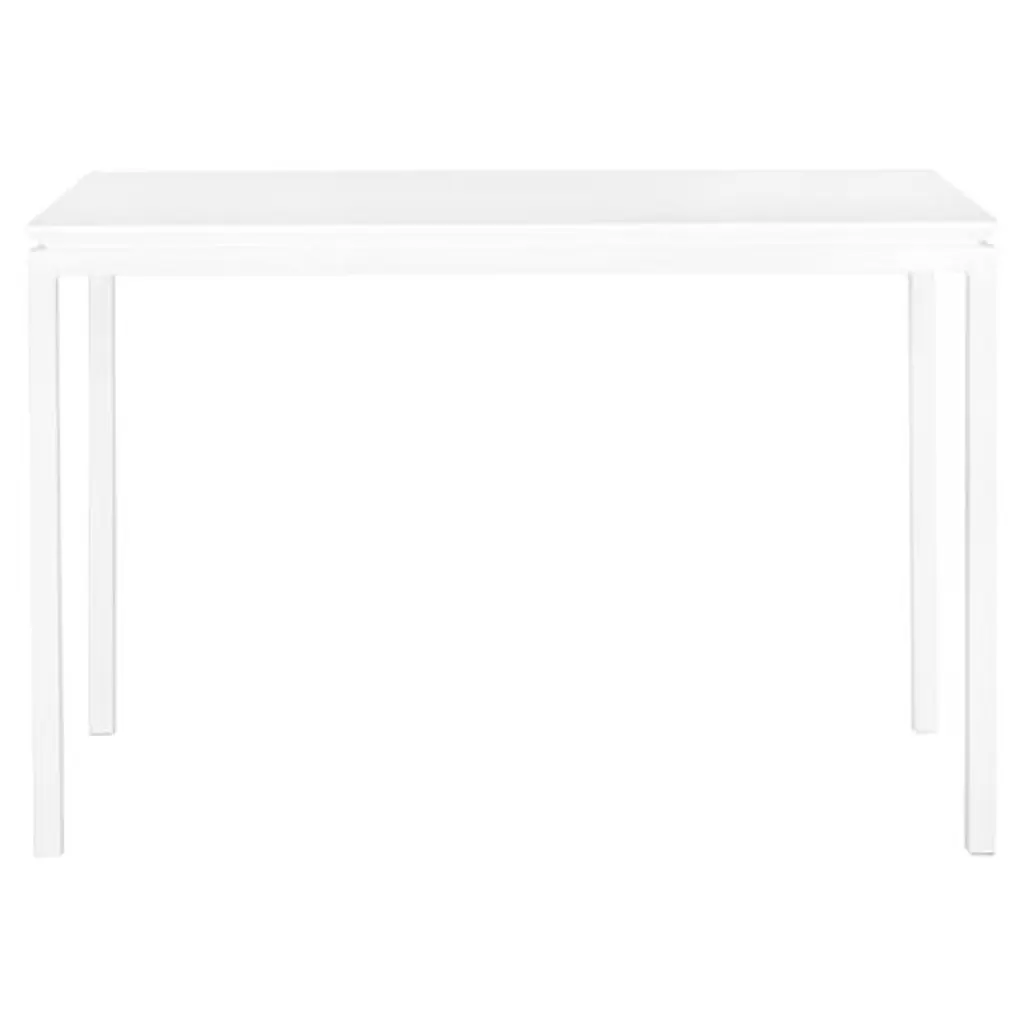This desk adds clean-lined sophistication to any bedroom or study. Its slender but sturdy white powder-coated iron legs support a sleek white top.