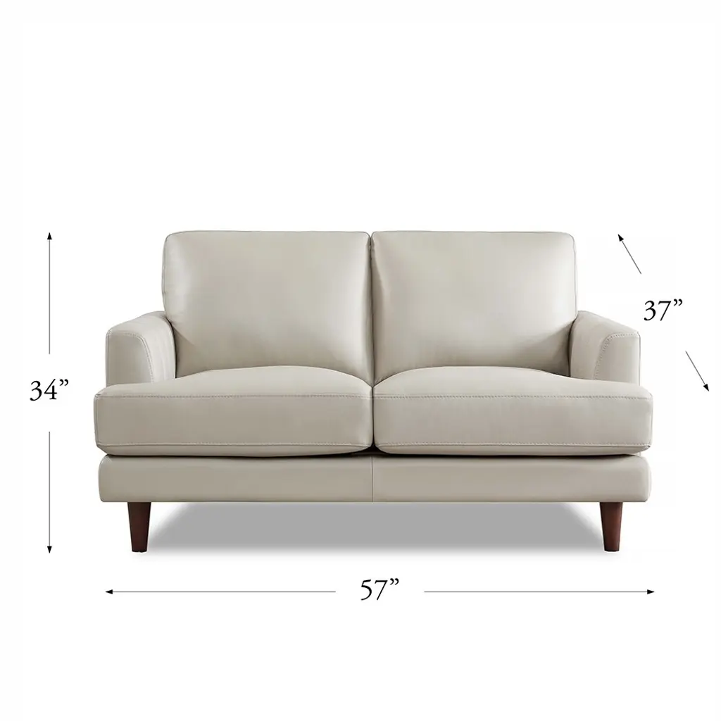 Ivy Living Cassia Top Grain Leather Loveseat With Feather Memory Foam And Springs - Ice White