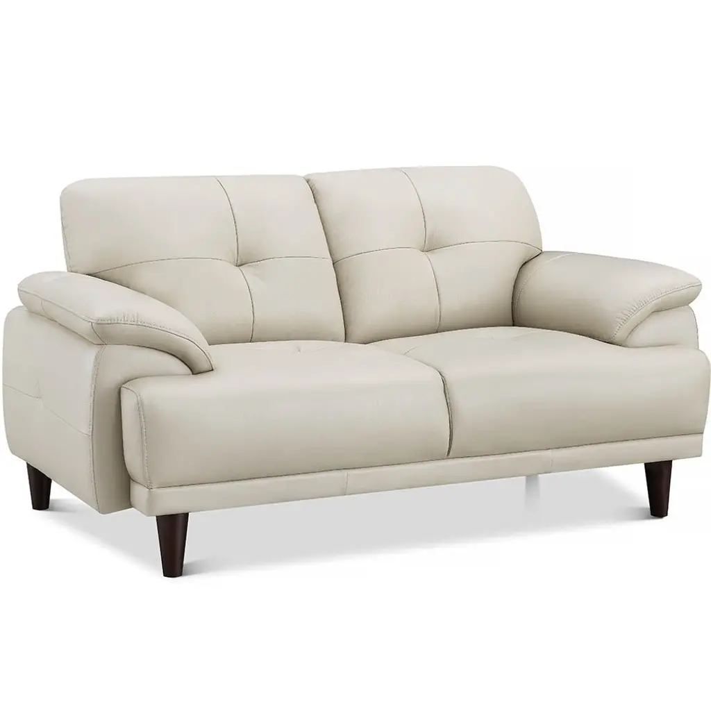 Ivy Living Echo Top Grain Leather Loveseat With Memory Foam And Springs - Vanilla White