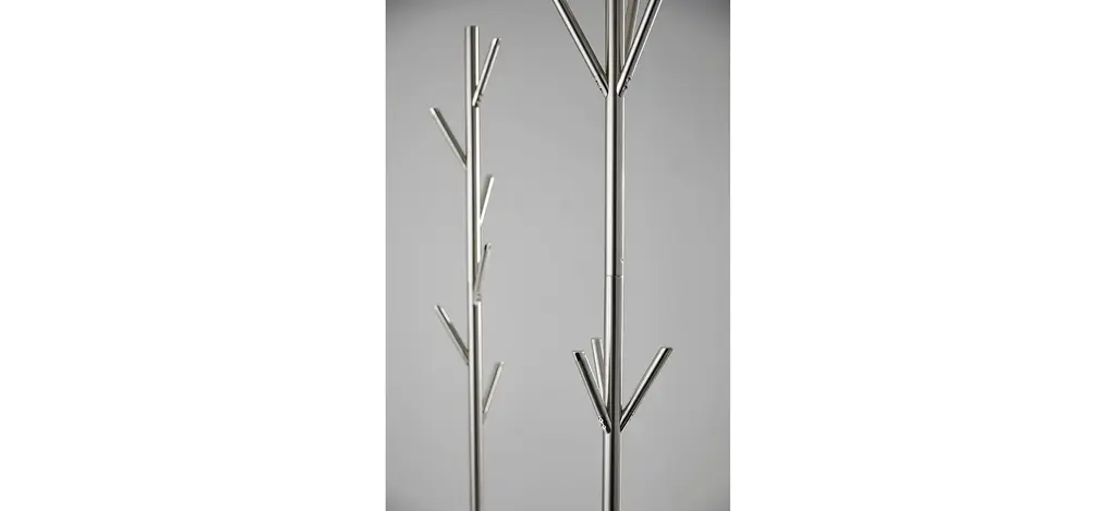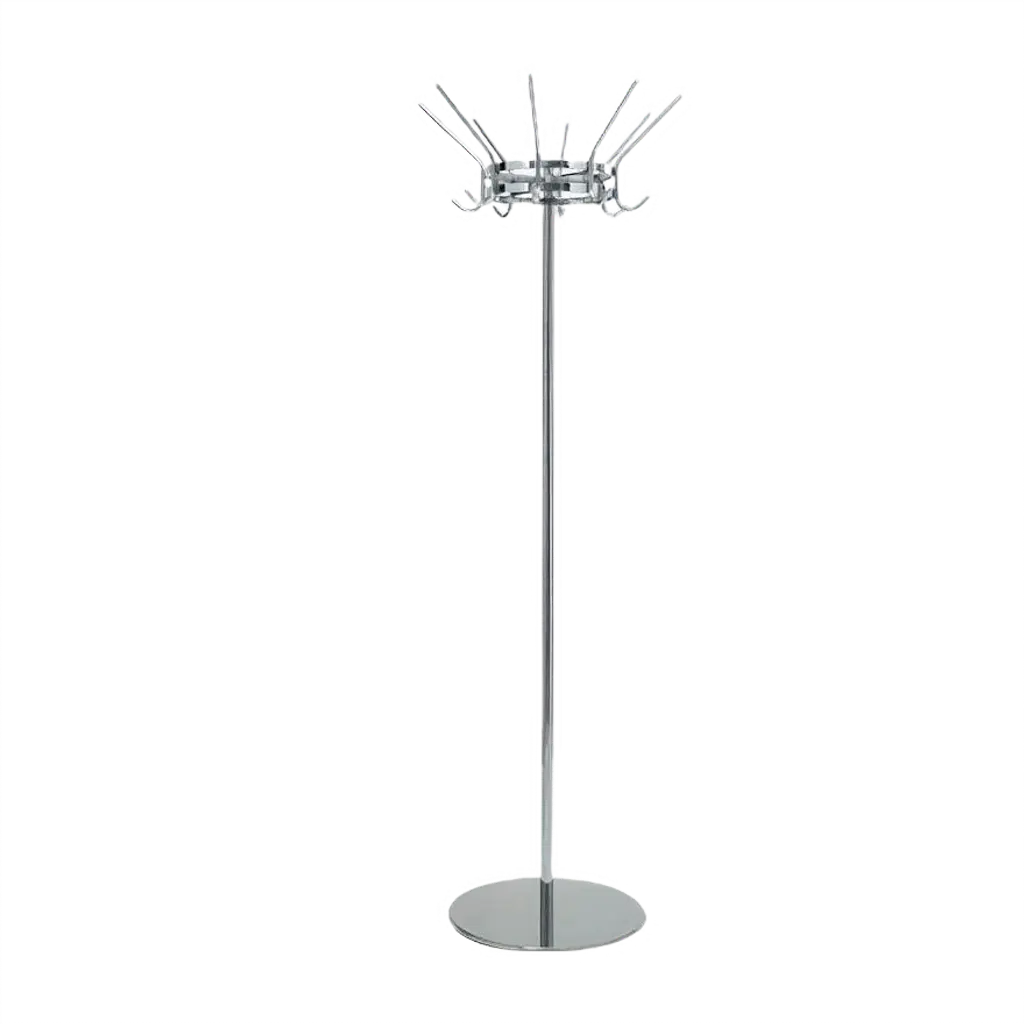 A contemporary design, the Iwatani Coat Rack suits office, home or dorm with six pegs at two levels for coats, bags, and jackets. A brushed steel finish complements the design.
