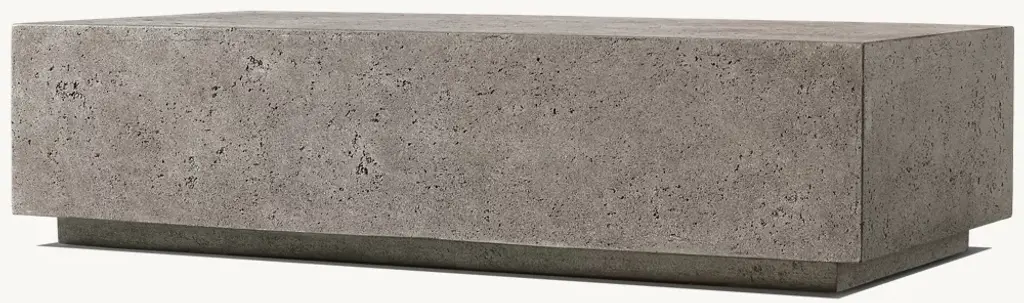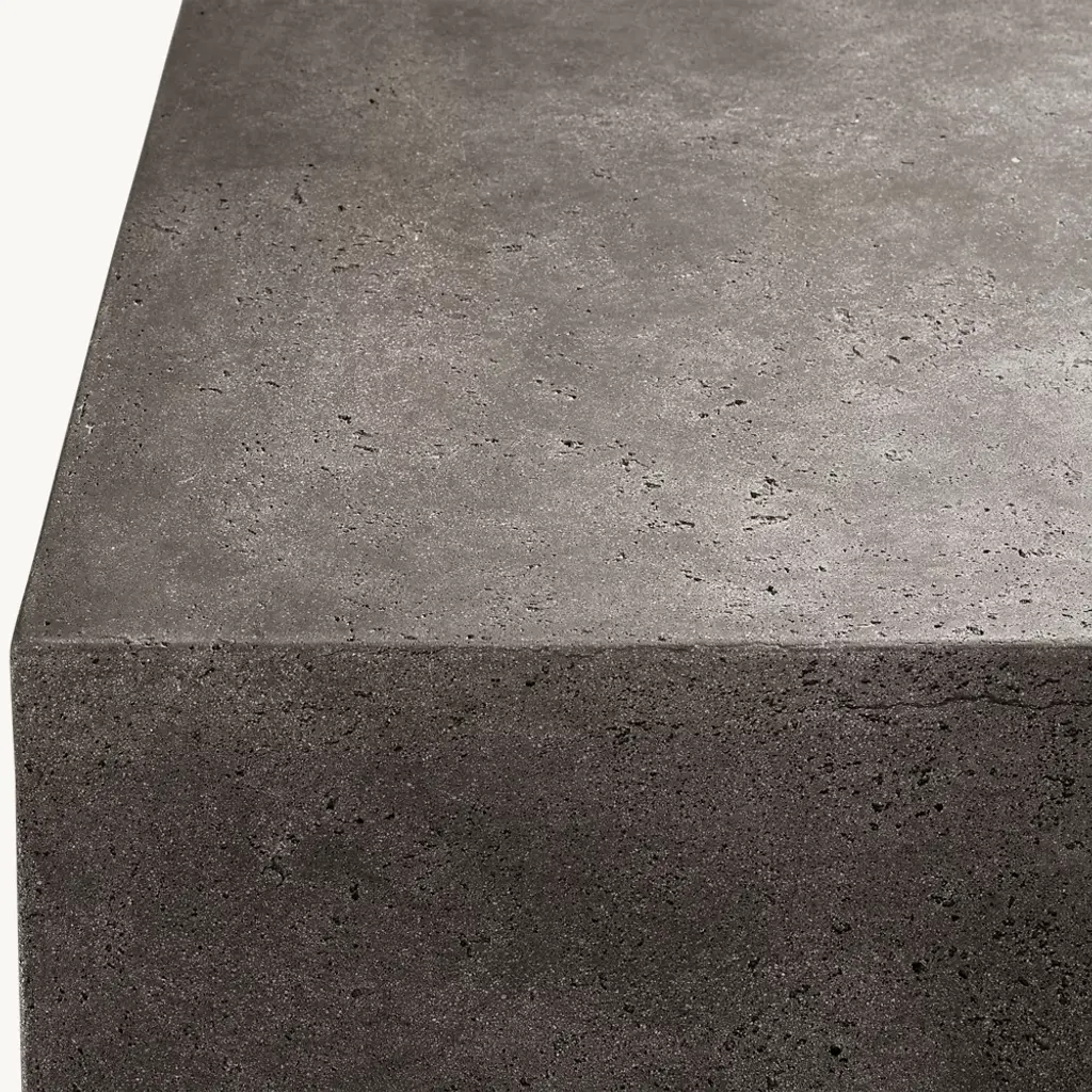 Our table makes an architectural statement outdoors. Artisan crafted from high-performance reinforced concrete, it is hand finished in a multistep process that captures the look and feel of natural limestone.