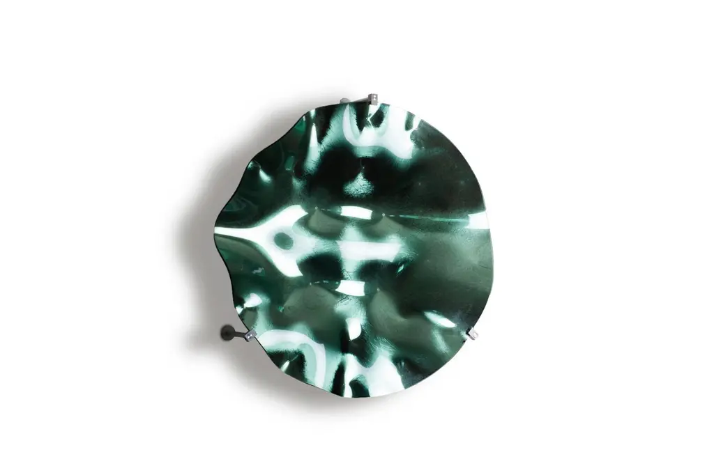 Wall circle created by Orfeo Quagliata from our new collection IZDATGLAZ. These shimmering glass gems create a simple modern touch for any space. Whether it’s gold, silver or one of the velour like colors they create a simple but bold statement. We have invented this new technique that involves a unique system to create the metallic, velour like feeling in the objects. It is a very artisanal process where each piece is one of a kind; handcut, polished and thermoformed. There will always be some slight love marks or details that ocurre during the creation of each piece.Dimensions and shape may vary.The colors are customizable.