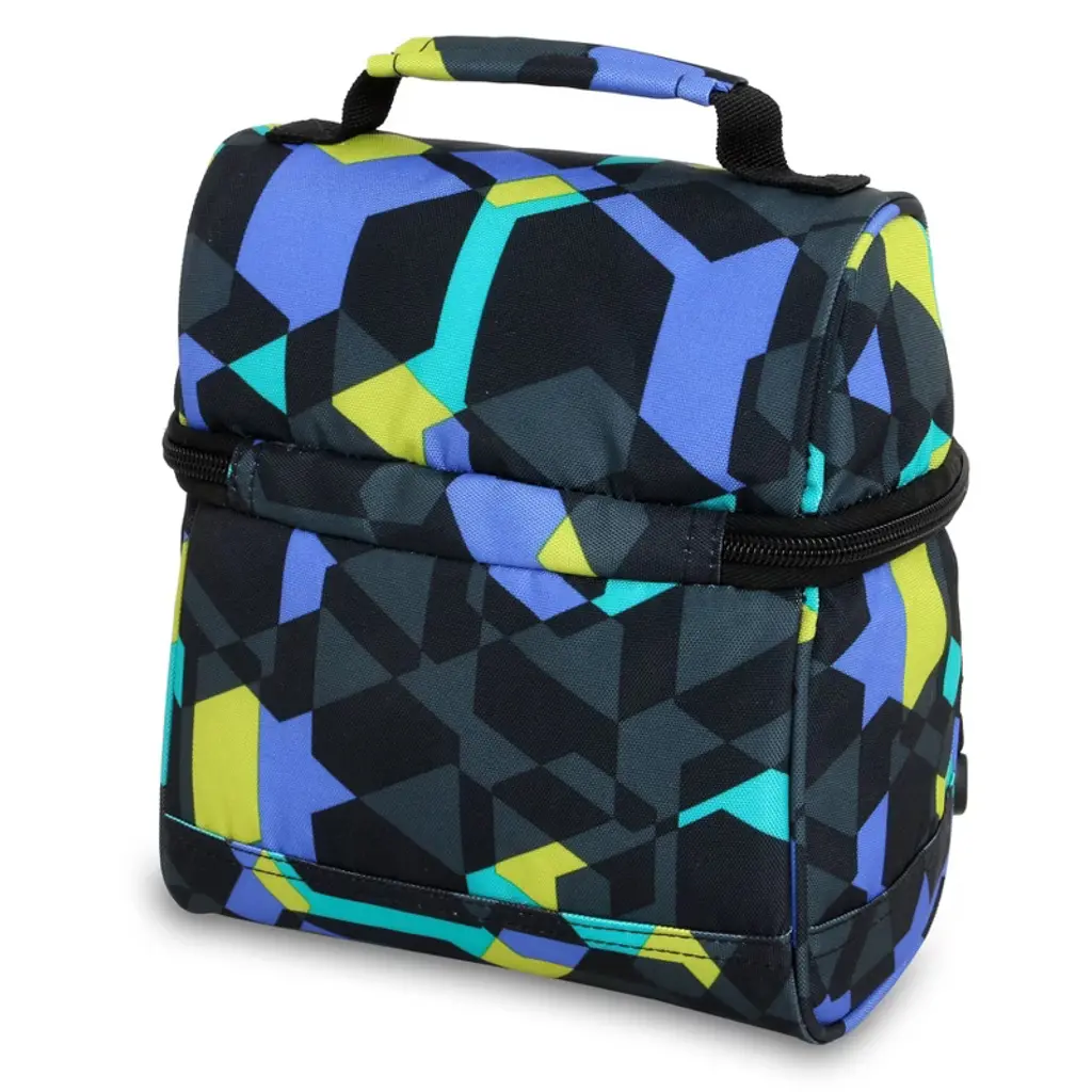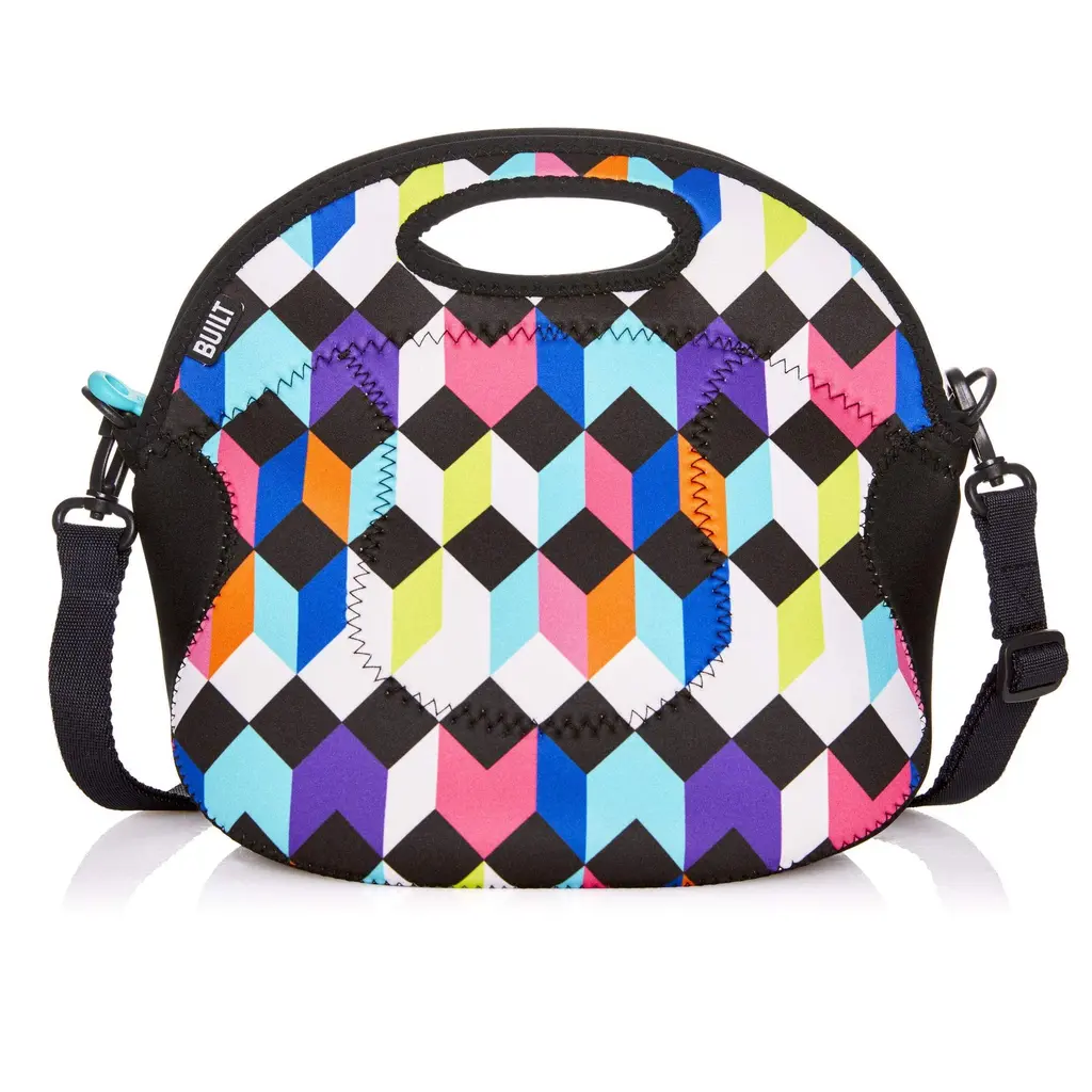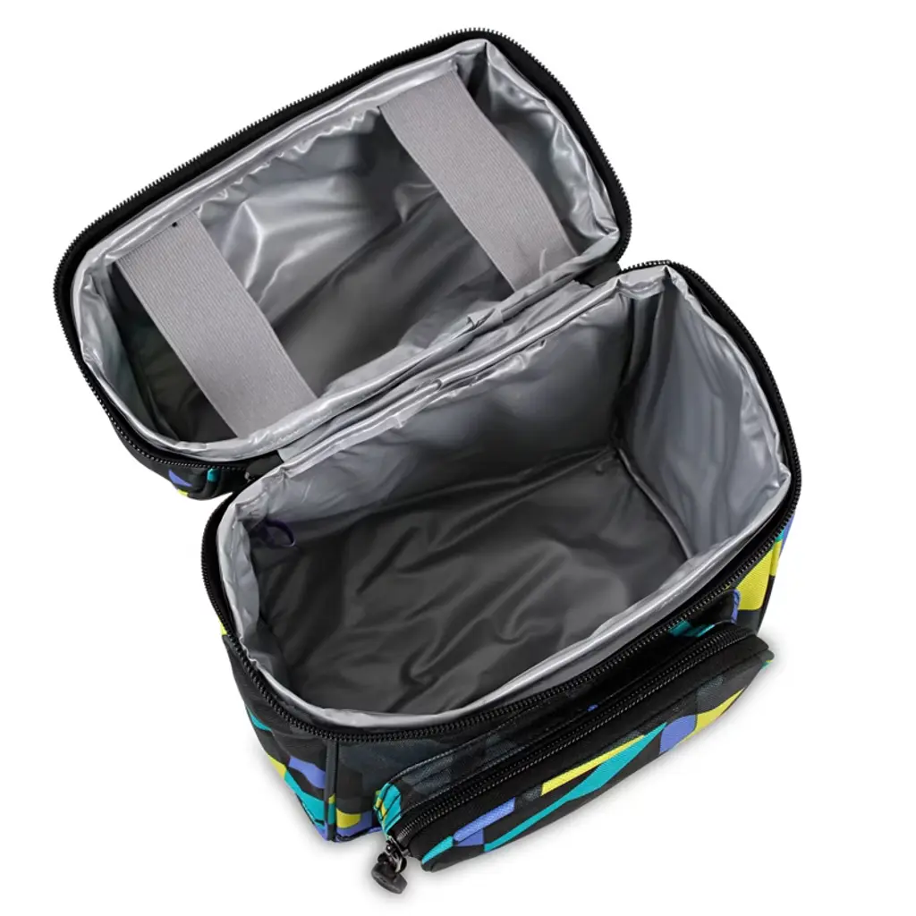 Keep your foods fresh with Corey Insulated Lunch Bag. This insulated lunch bag has a small footprint, like a mini lunch bag, and is small enough to fit in a child’s backpack or crowded office fridge, yet it’s large enough to hold a medium lunch. This cooler lunch bag for women holds a 12-16 oz drink, a yogurt cup, a fruit cup, a small cottage cheese container, an apple, and 2 frozen gel packs. Your drink bottle secures in the top to keep it from squishing your sandwiches. The front pocket of this small insulated lunch box is perfect for carrying condiments. High density insulation and the heat reflective silver lining keep your food cold (or hot) in this thermal lunch box. This washable lunch bag has a water resistant lining that wipes clean with a damp sponge.