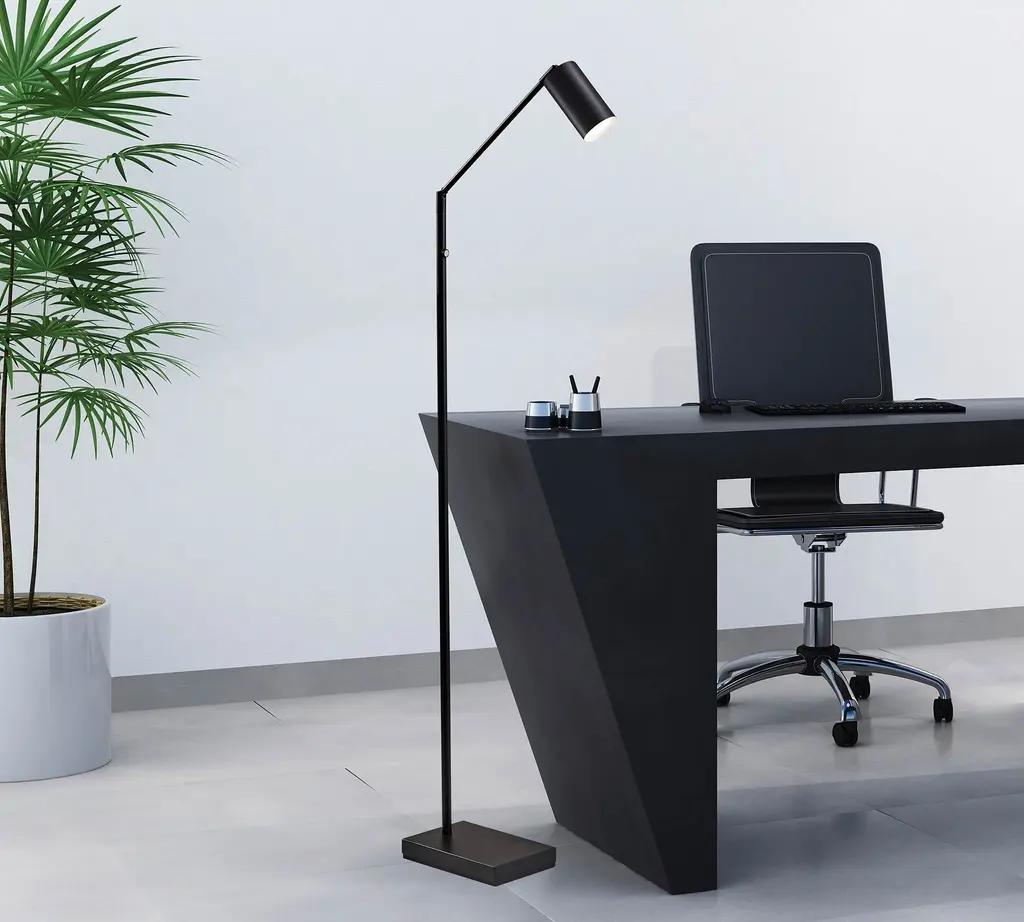 A shining example of minimalist modern style, the Jack LED Floor Lamp is made up of thin, angular lines and matte black metals. Adjustable at the arm and shade joints, this lamp illuminate all areas when working at desk or reading on the sofa. Easily adjusted by a simple touch switch, the integrated LED bulb provides three different light settings to suit all needs.