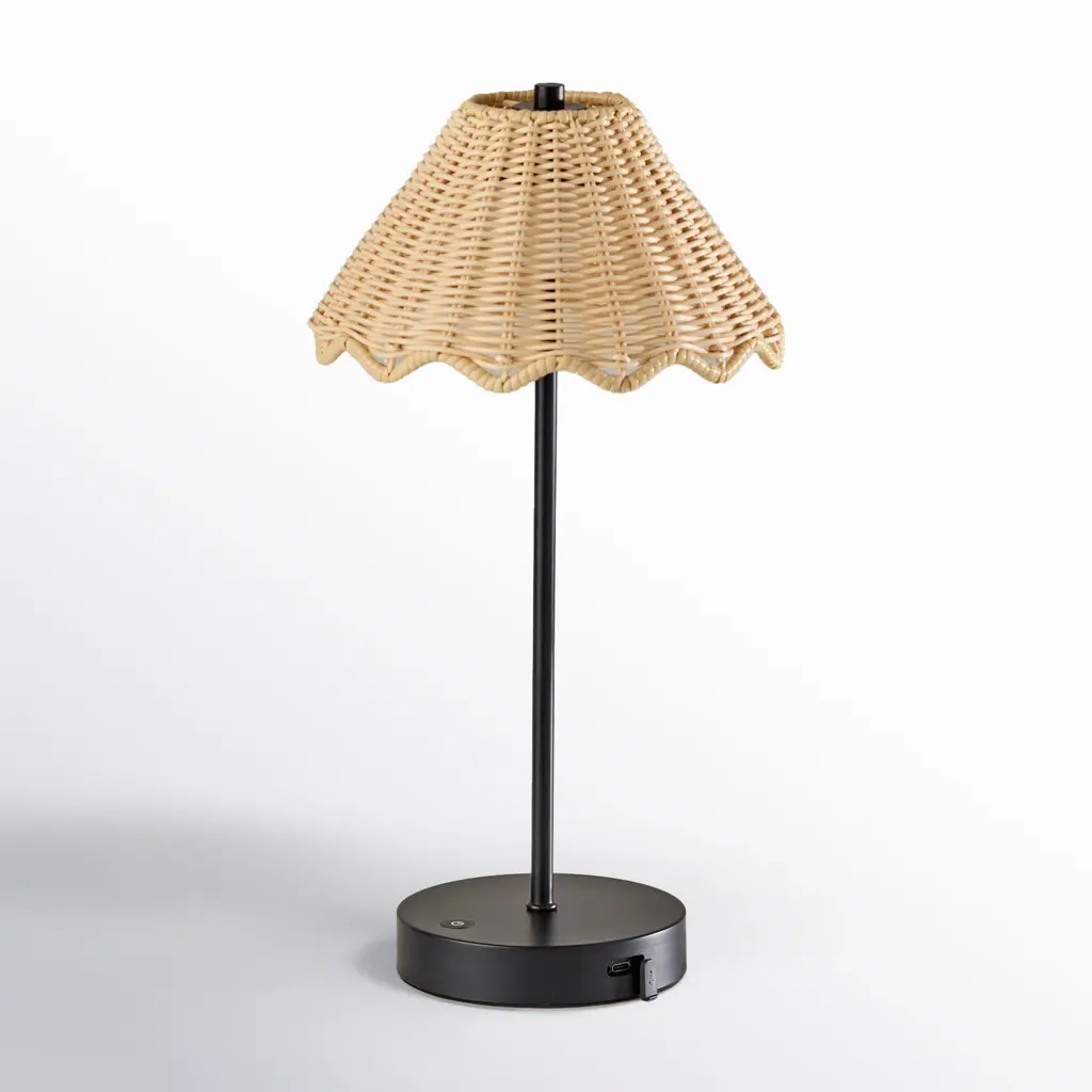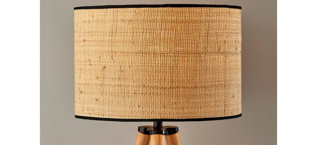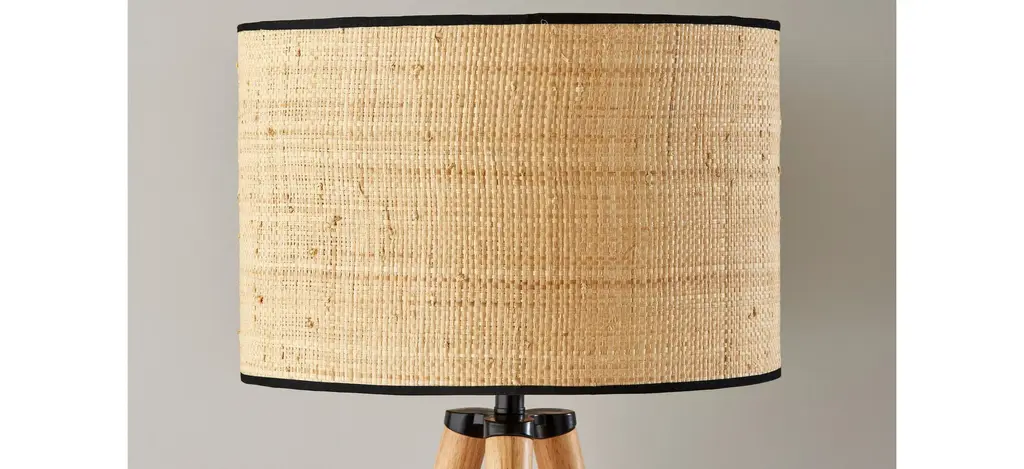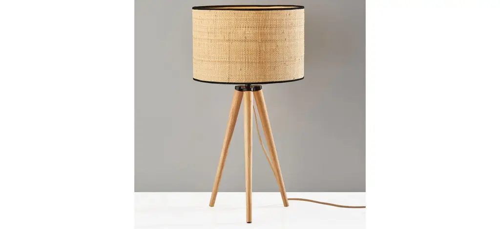 The Jackson Table Lamp adds natural elements to the contemporary tripod design for a stunning complement to any d_cor. The wood tripod base is sturdy and stylish and features antique brass detailing. Topping the lamp is a short natural rattan drum shade that highlights the texturing of the material as it disperses the light from a 100W bulb. The lamp shade is also trimmed with fabric along the top and bottom to match the base. A 3-way rotary socket switch provides a variety of lighting options, allowing you to easily adjust the brightness between low, medium, and high.