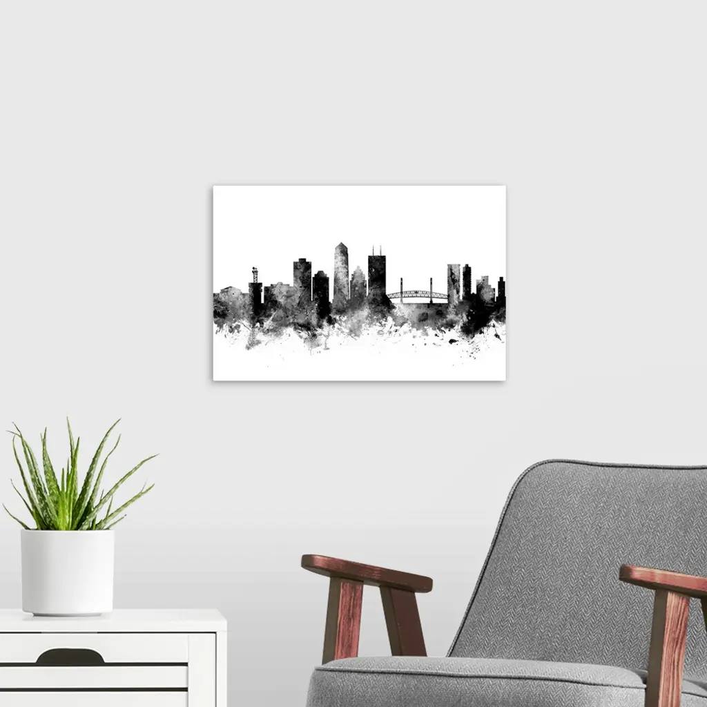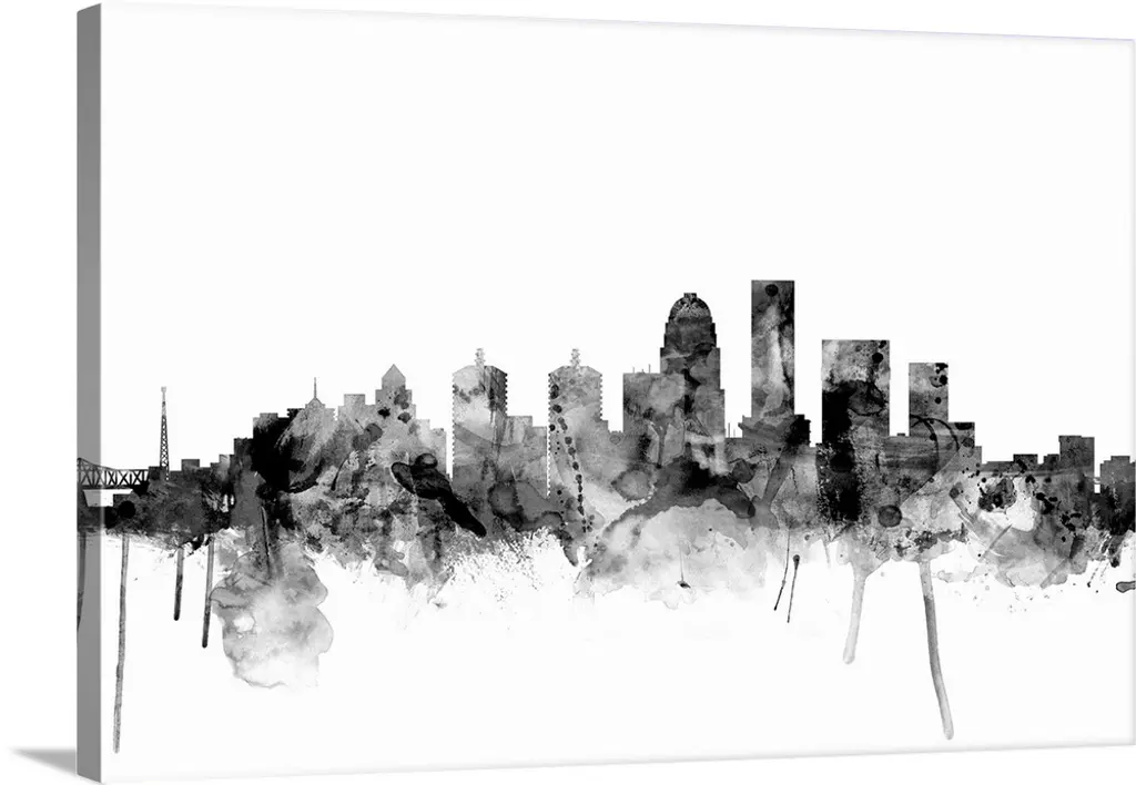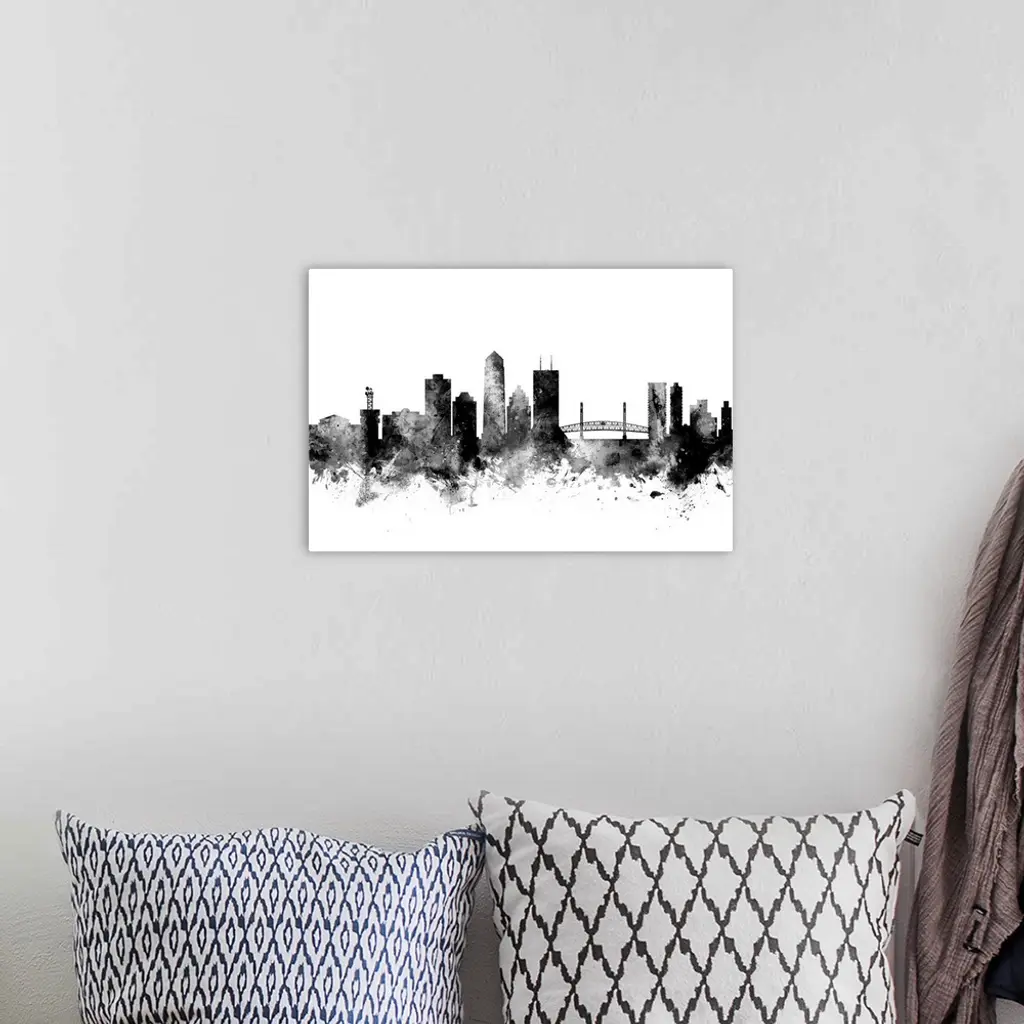 Watercolor art print of the skyline of Jacksonville, Florida, United States