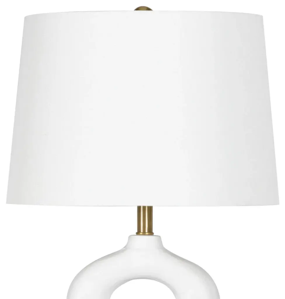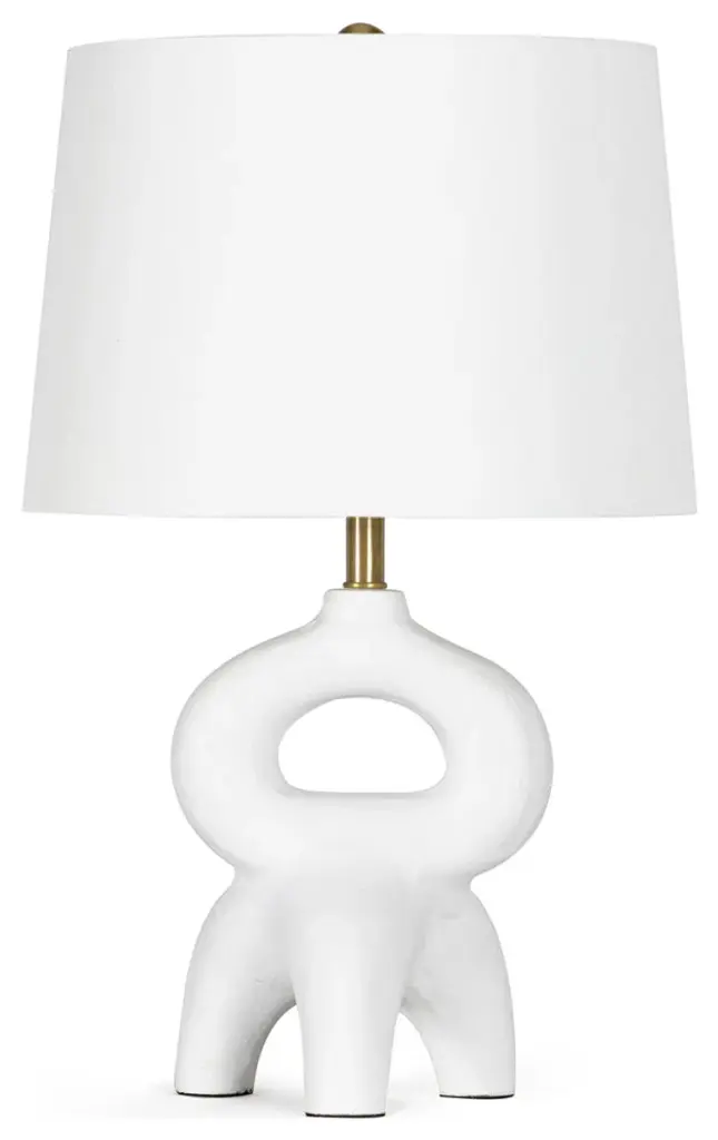 The Jacob Metal Mini Lamp has a unique, sculptural shape paired with a white, plaster-like finish. Think folk art with a modern twist. Complemented by a crisp, natural linen shade and natural brass fittings, the Jacob Mini Lamp will add the perfect dose of character to a living room, home office or open shelves.Bulb Type: B Type Candelabra Base (E12)Wattage: 60 Watt MaxNumber of Bulbs Needed: 1Bulb(s) Included: No