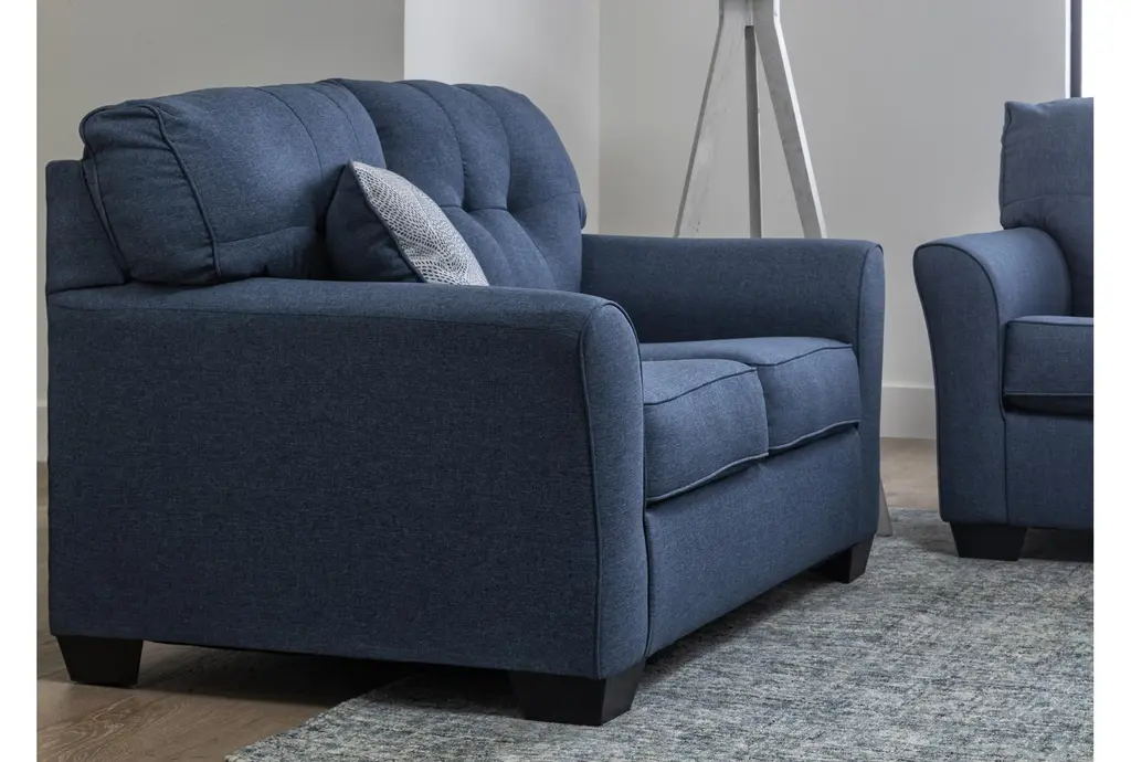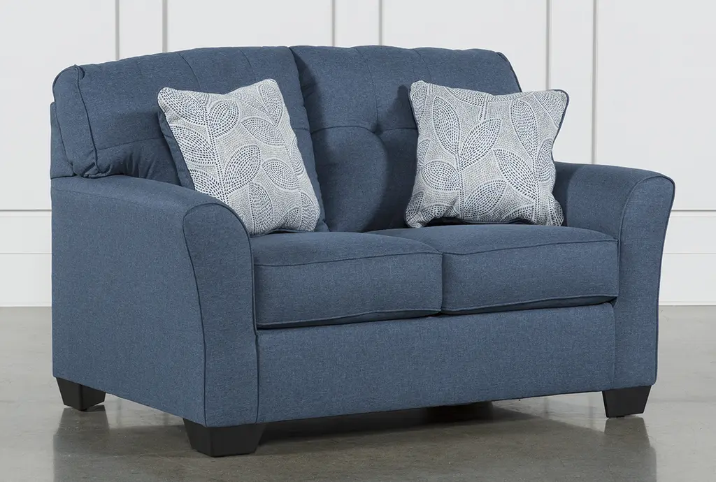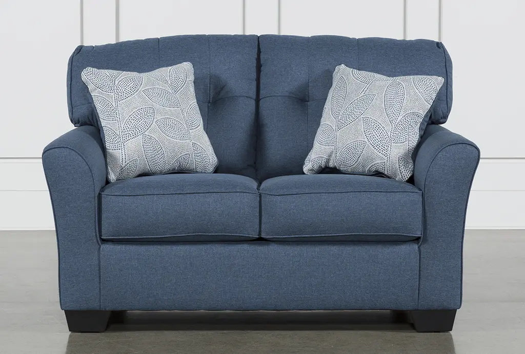 You can create the most welcoming living room with our ultra-inviting Jacoby Denim loveseat. The design is just waiting for you and your guests to relax and enjoy its casual flare arms, stylish tufted back and supportive cushions. It even features reversible accent pillows that can transform the look with a simple flip.