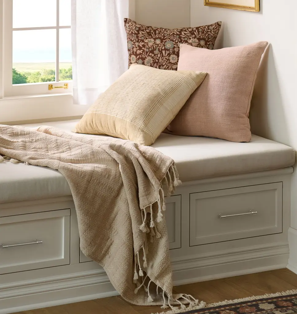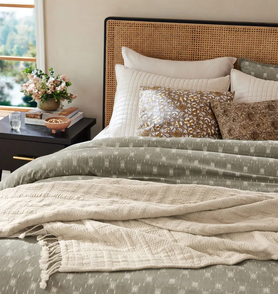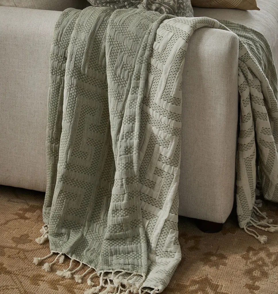 Lightweight and cozy, our all-season Jacquard Reversible Organic Cotton Throw features neutral colors that fit in any space. Beautiful and textural, each throw is crafted from 100% organic cotton and features braided tassels—perfect for getting cozy during colder months or as a decorative accent in your bedroom or living room any time of year.