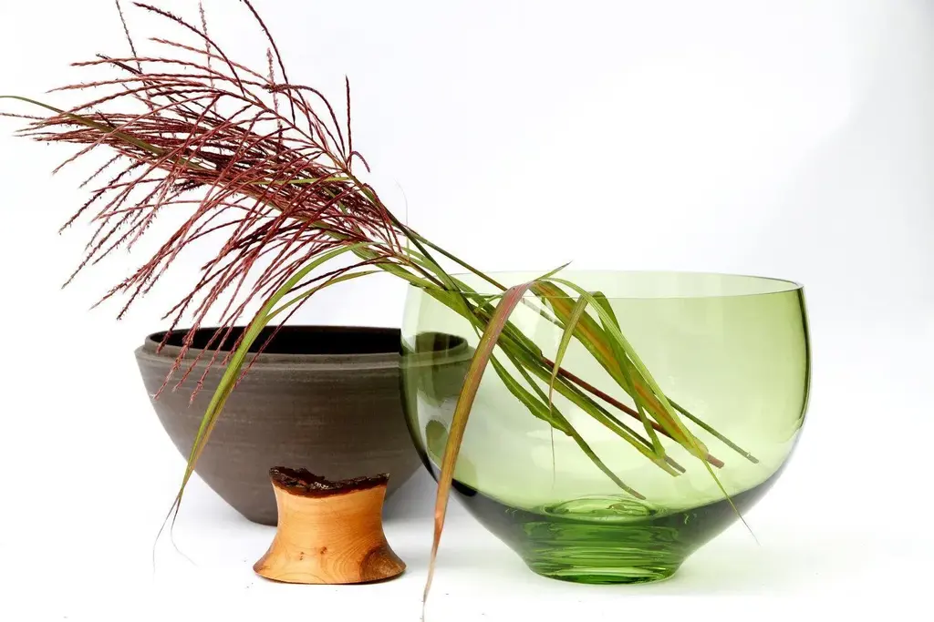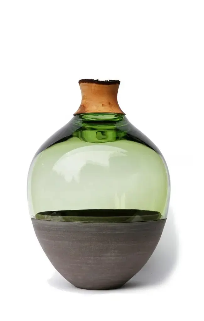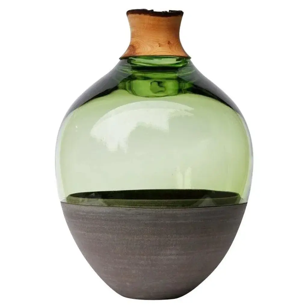 Jade tsv4 stacking vessel, pia wüstenberg. Dimensions: d 34 x h 57. Materials: glass, wood, ceramic. Available in other colors. Handmade in europe: handblown glass (czech republic), ceramic (handmade in scotland), hand turned wood (finland). The materials then come to our warehouse in north germany where they are fitted and assembled. this piece is attributed to the mentioned designer/maker. It has no attribution mark and no official proof of authenticity, however it is well documented in design history. I take full responsibility for any authenticity issues arising from misattribution
