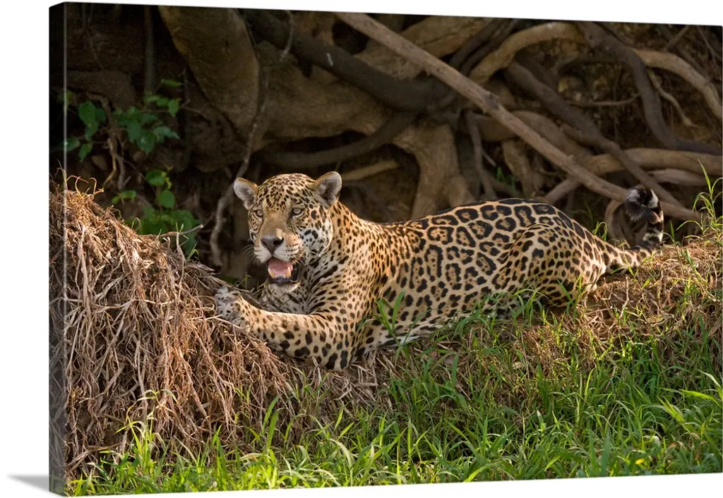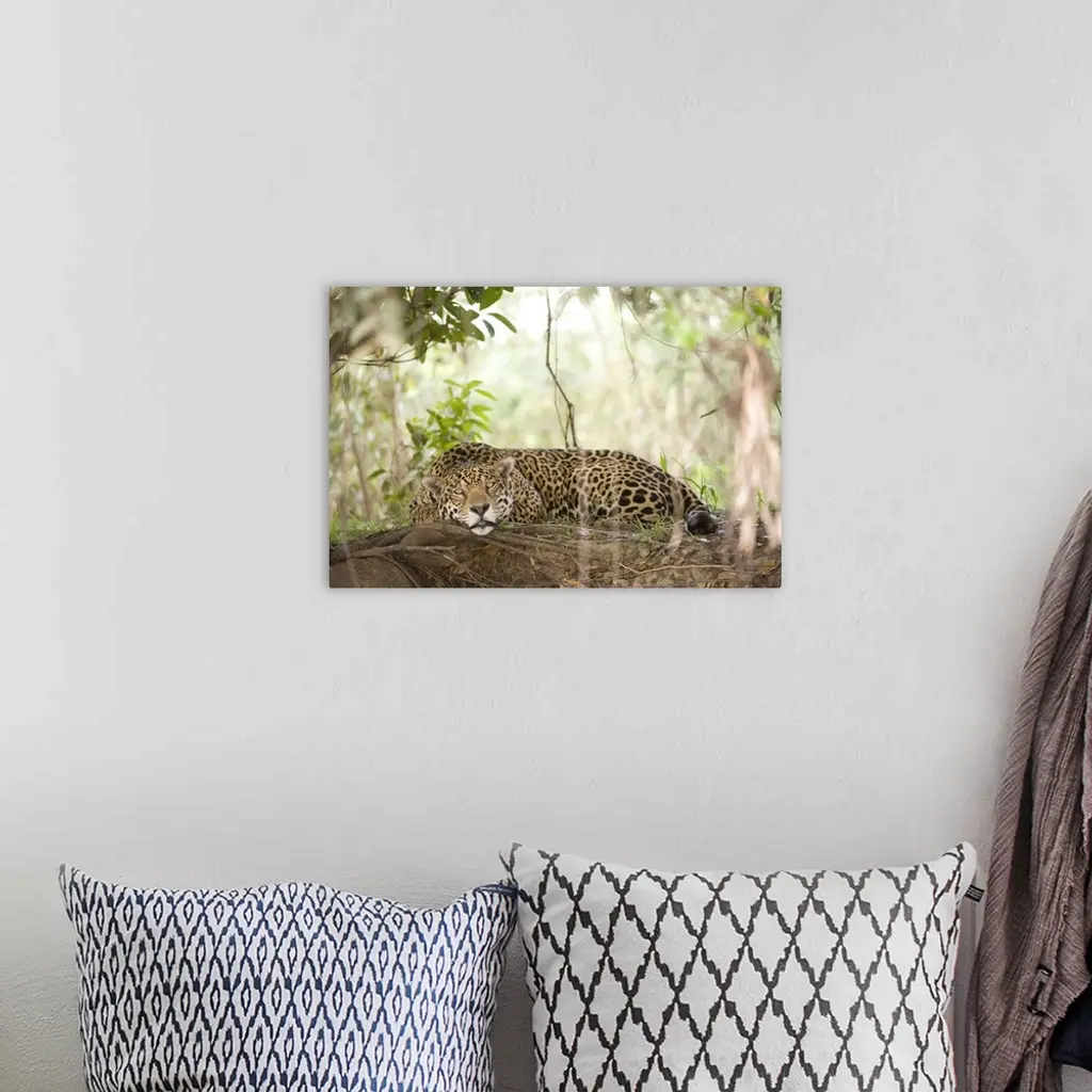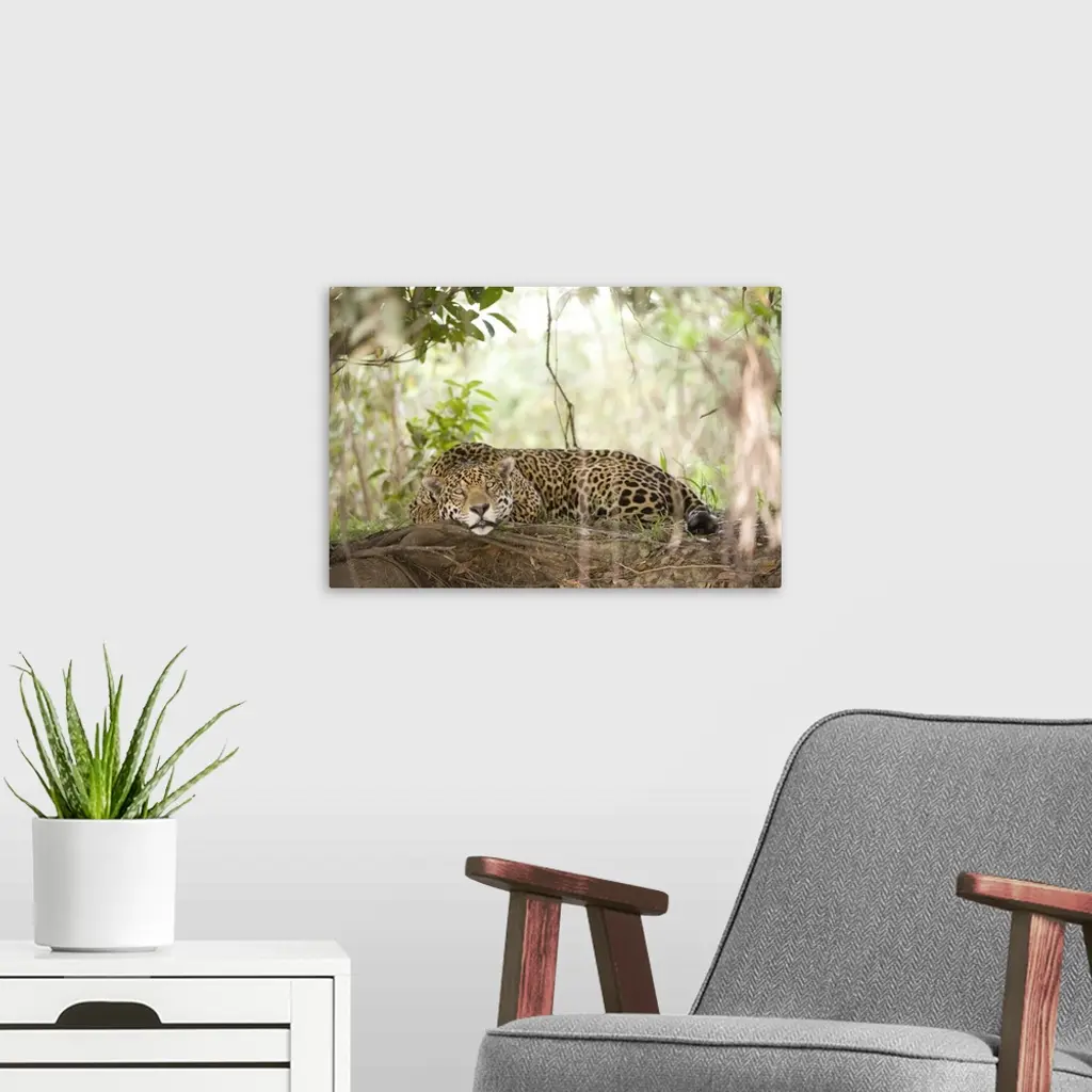Jaguar Panthera onca resting on a tree trunk Three Brothers River Meeting of the Waters State Park Pantanal Wetlands Brazil wall art for home and office decor. Discover canvas art prints, photos, mural, big canvas art and framed wall art in GreatBigCanvas.com's varied collections.