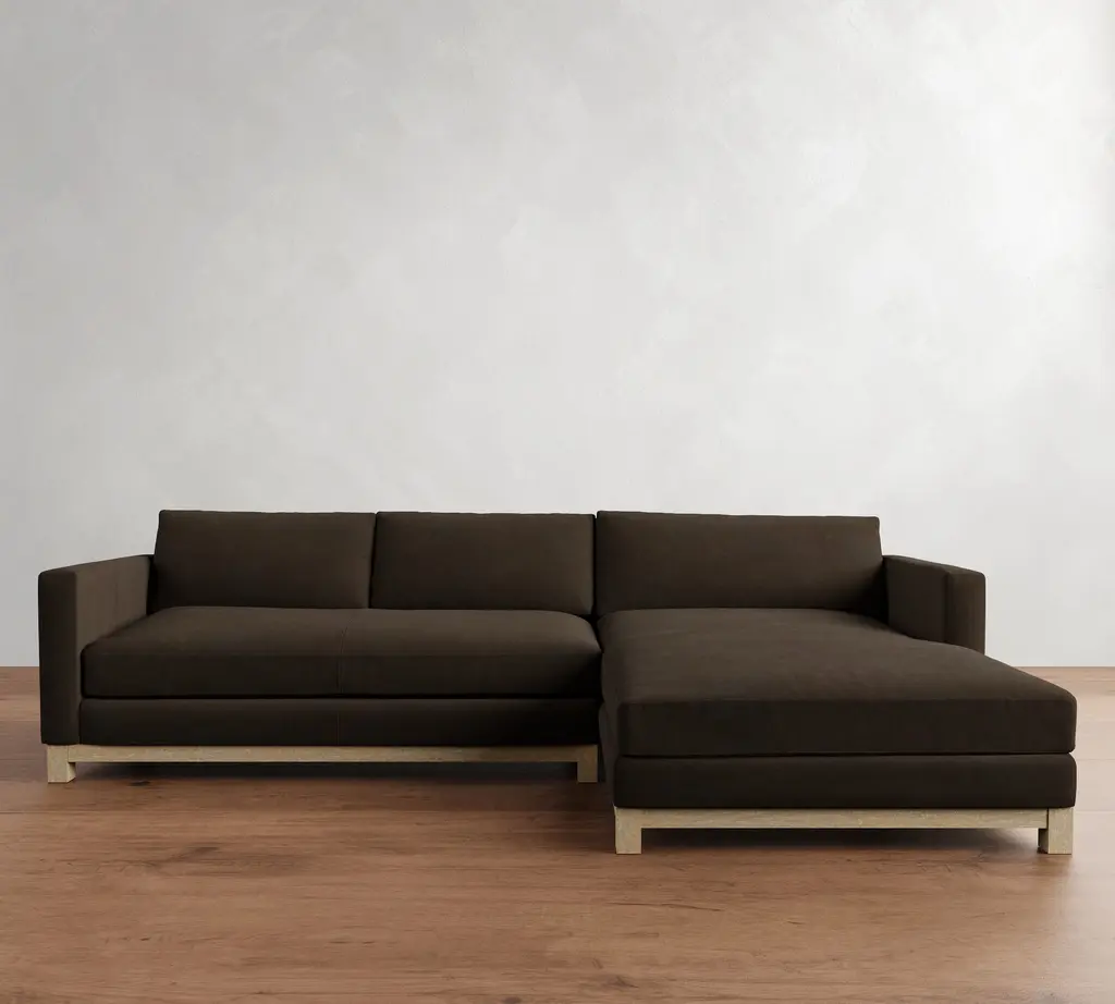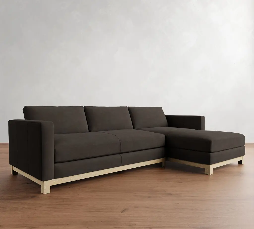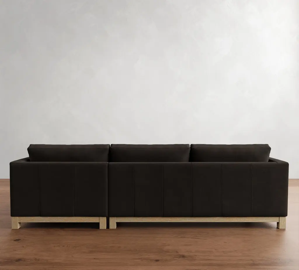 Jake Leather Seadrift Wood Base Chaise Sectional (111"–121")